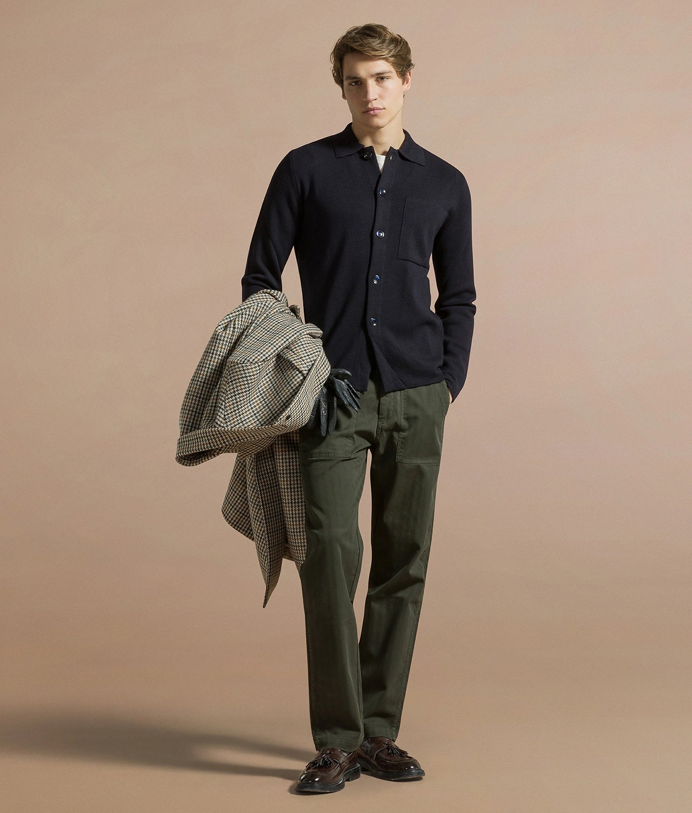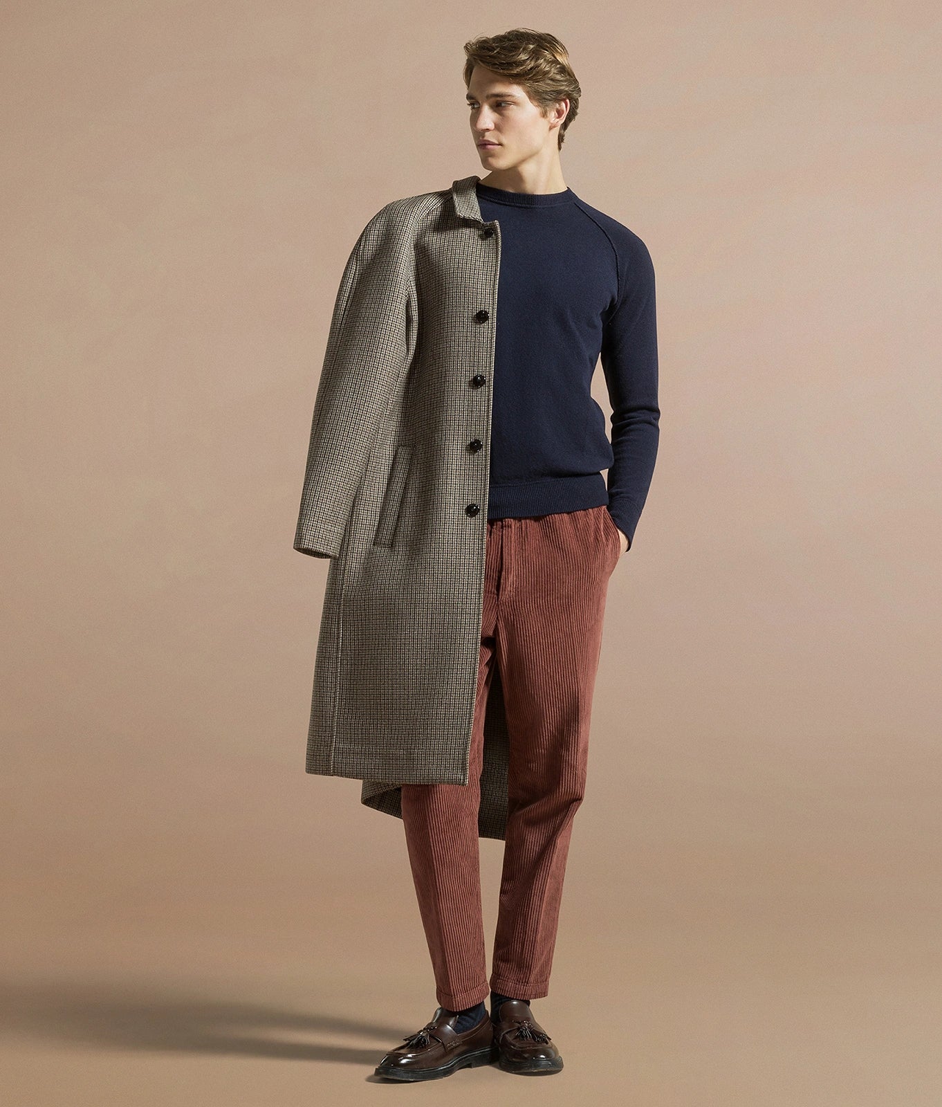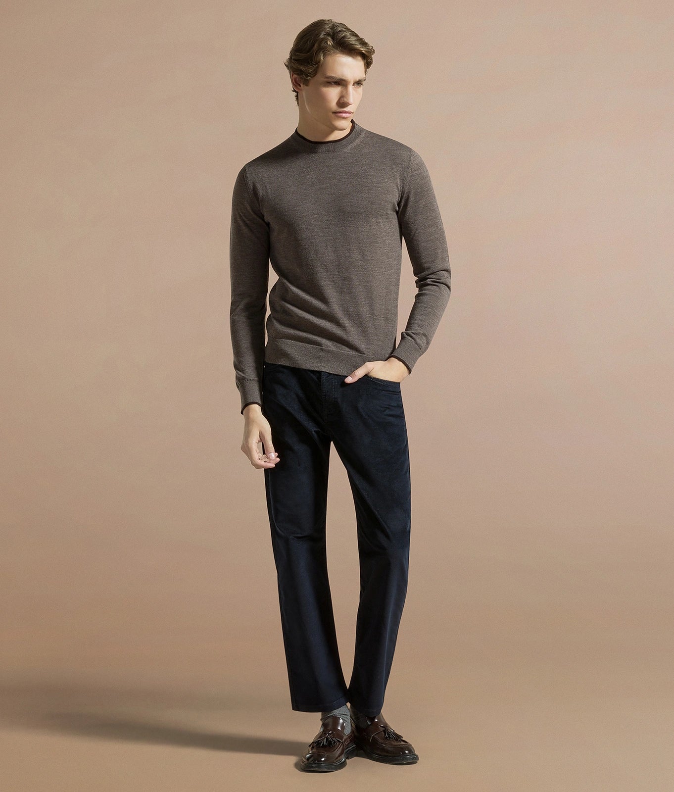 I pantaloni da uomo firmati Cruna sono proposti in abbinamento a una maglia in lana o a una overshirt in velluto a coste per un look rilassato, oppure in set-up con una delle giacche in collezione per le occasioni più ricercate.