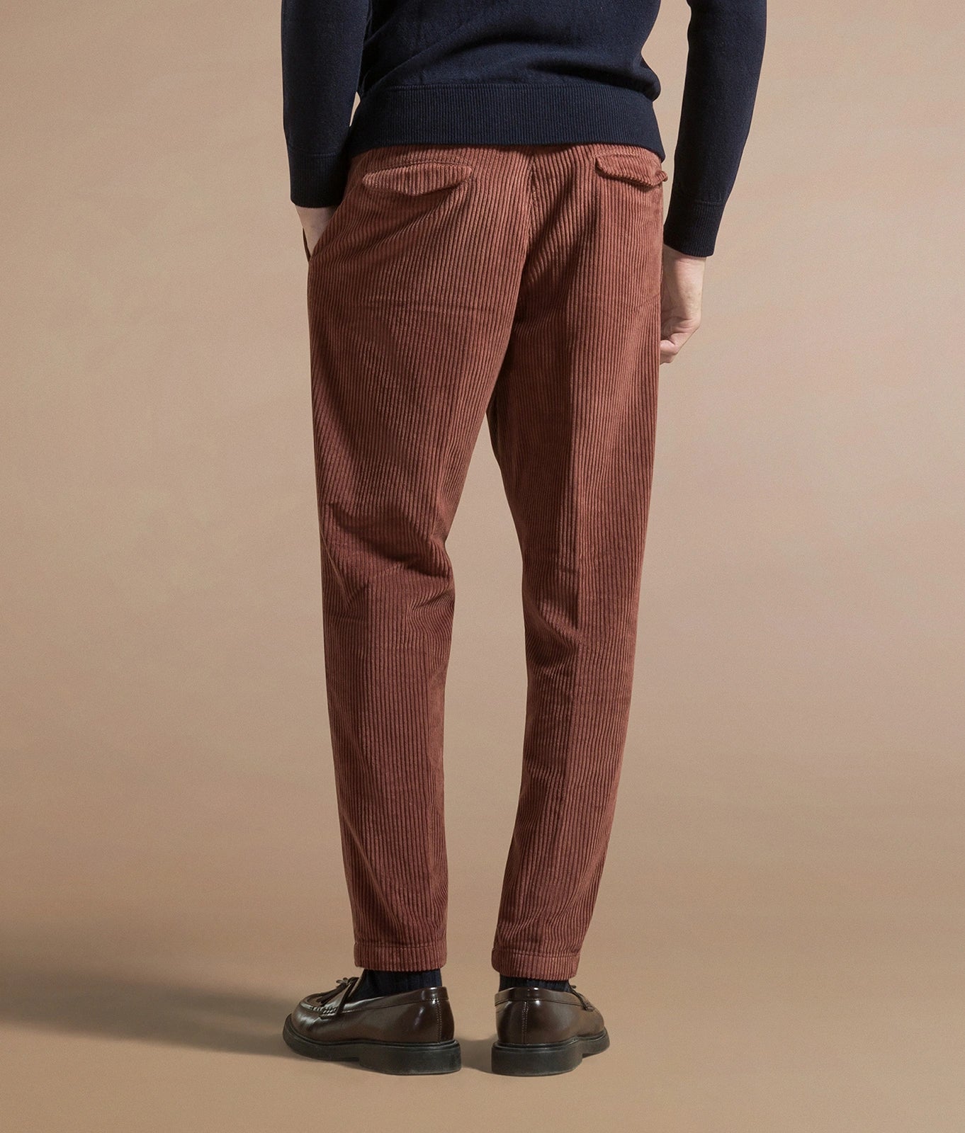 Tapered fit trousers with drawstring in broad wale corduroy