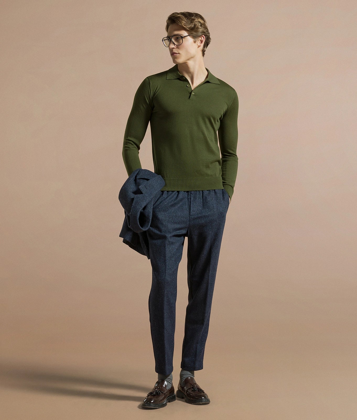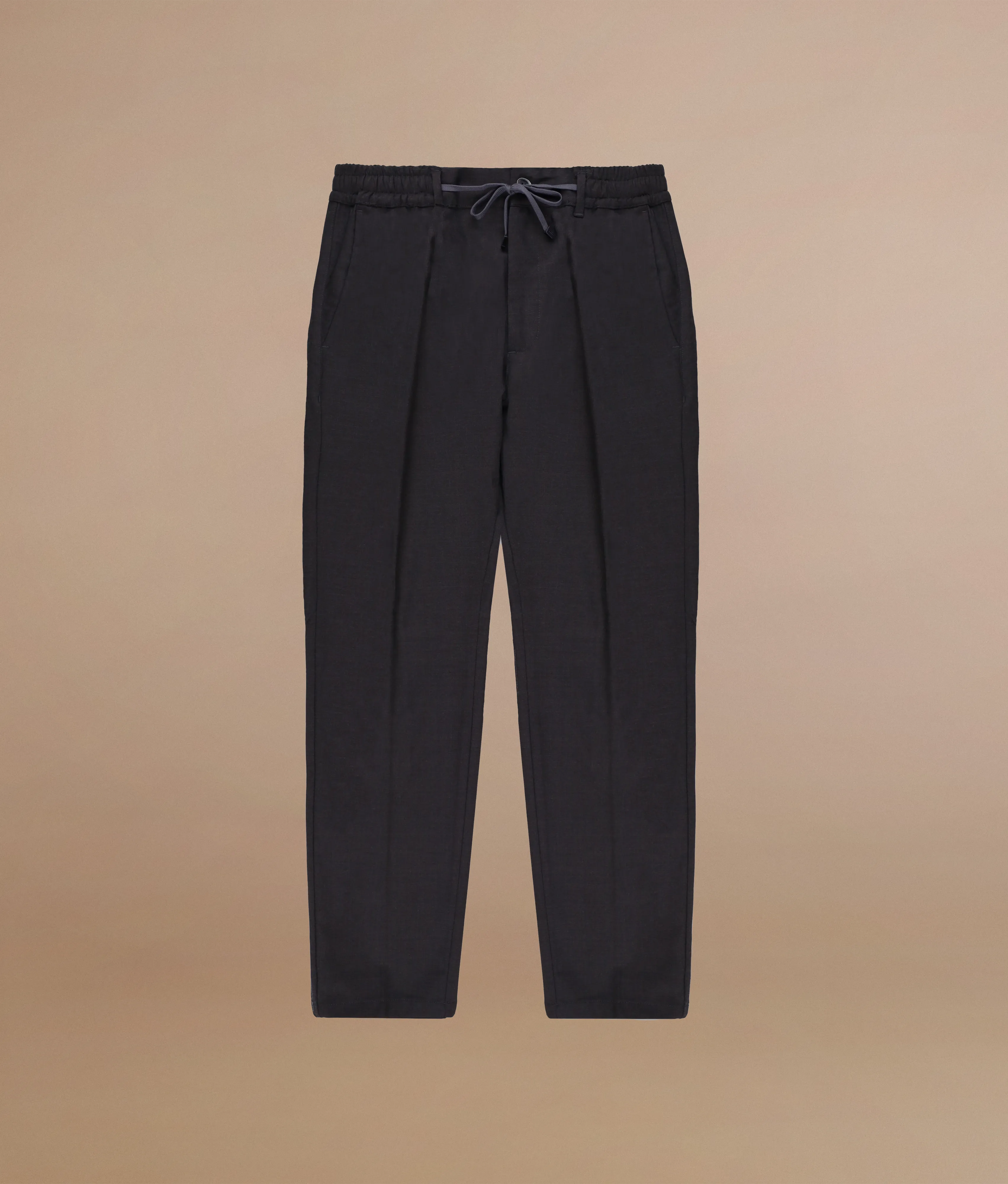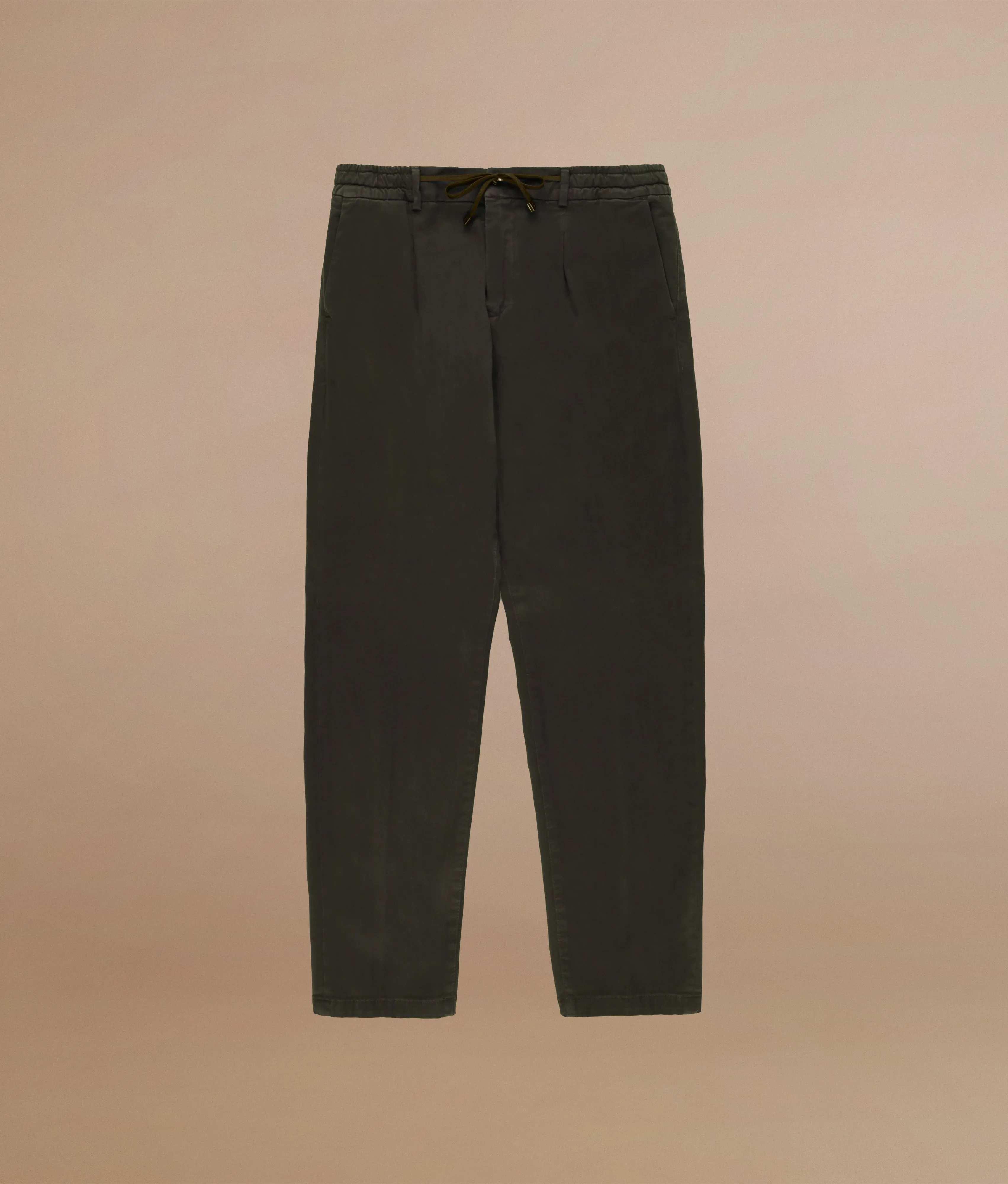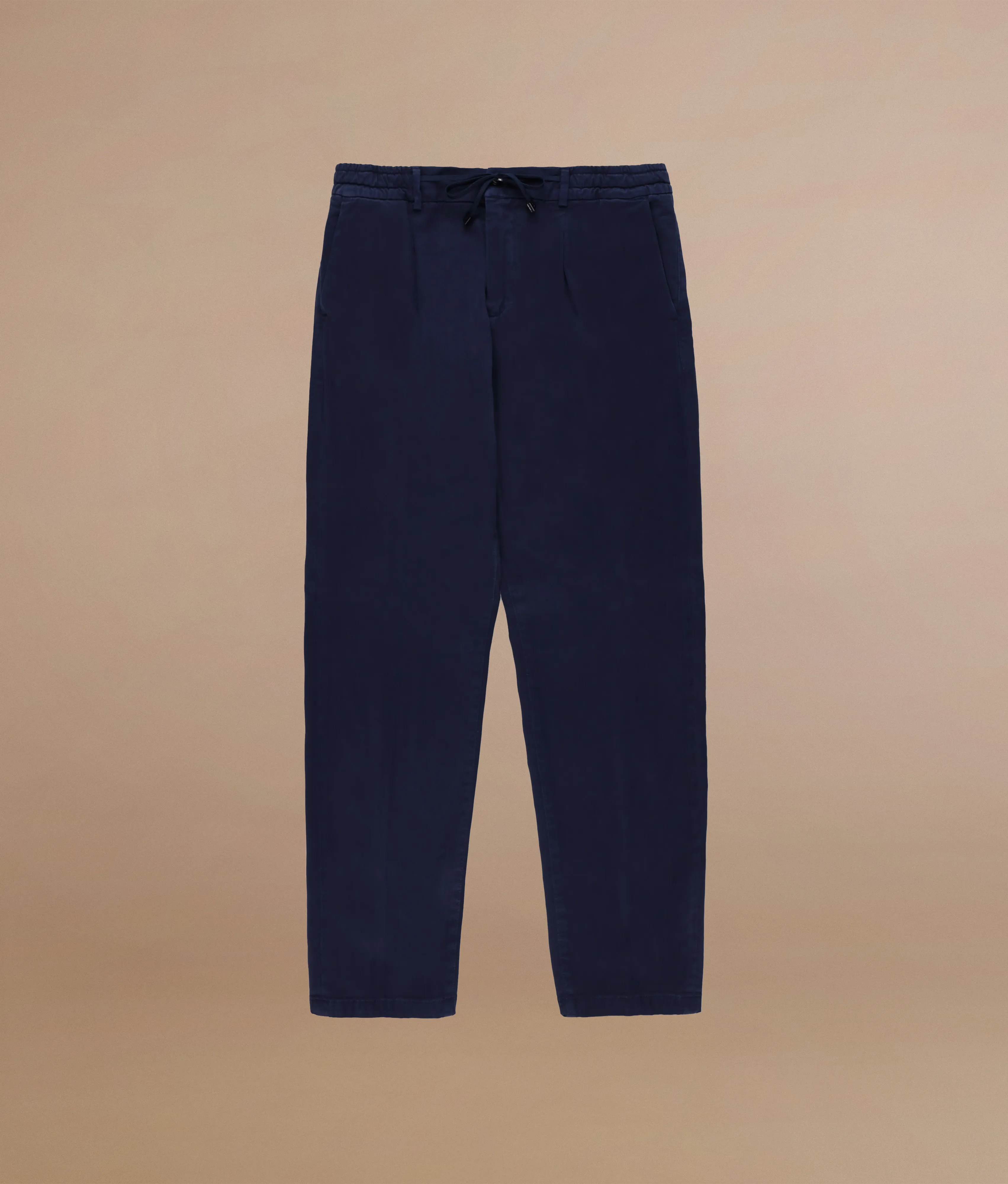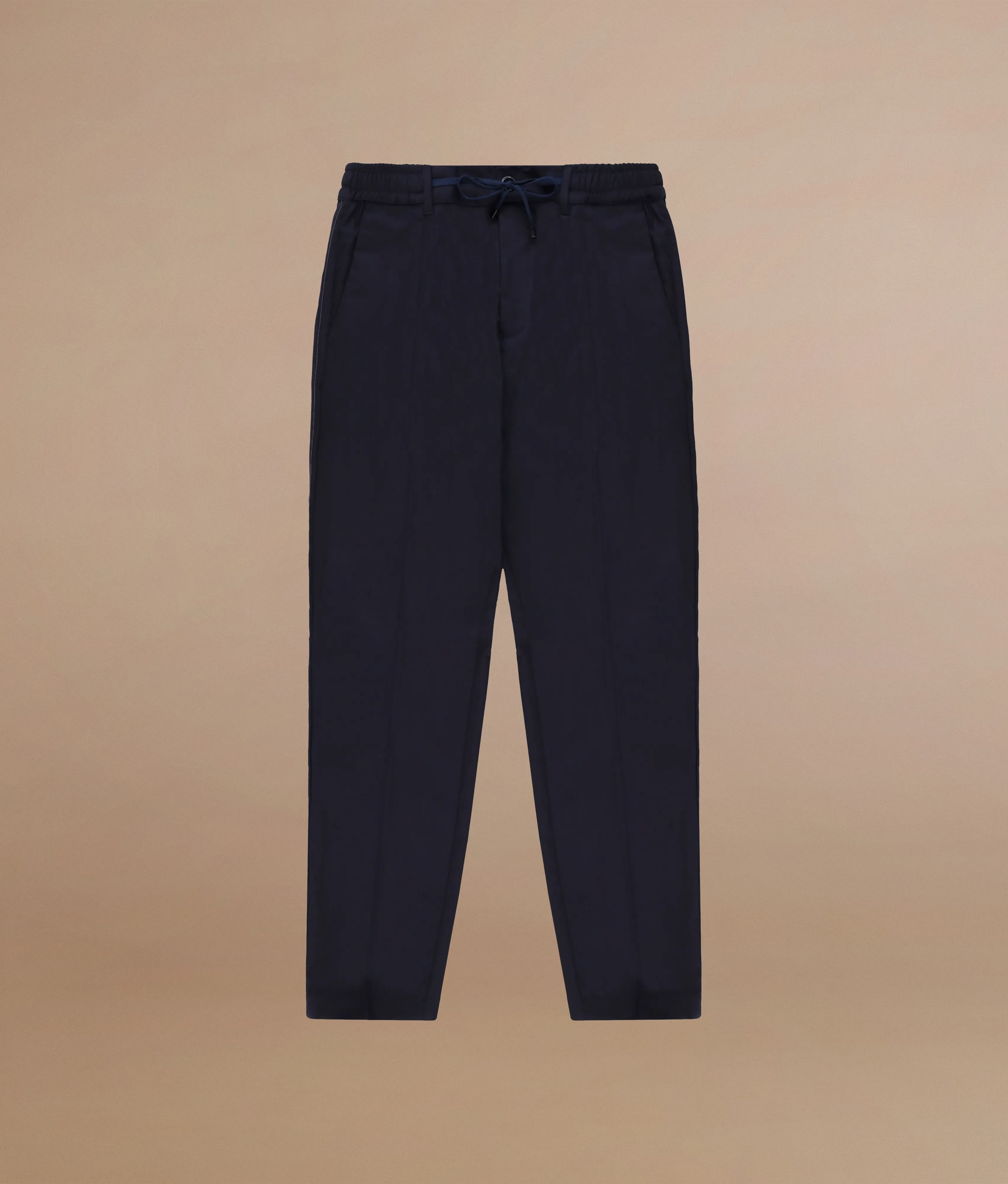 Tapered fit trousers with elasticated waist and drawstring in modal cotton and wool drill blend