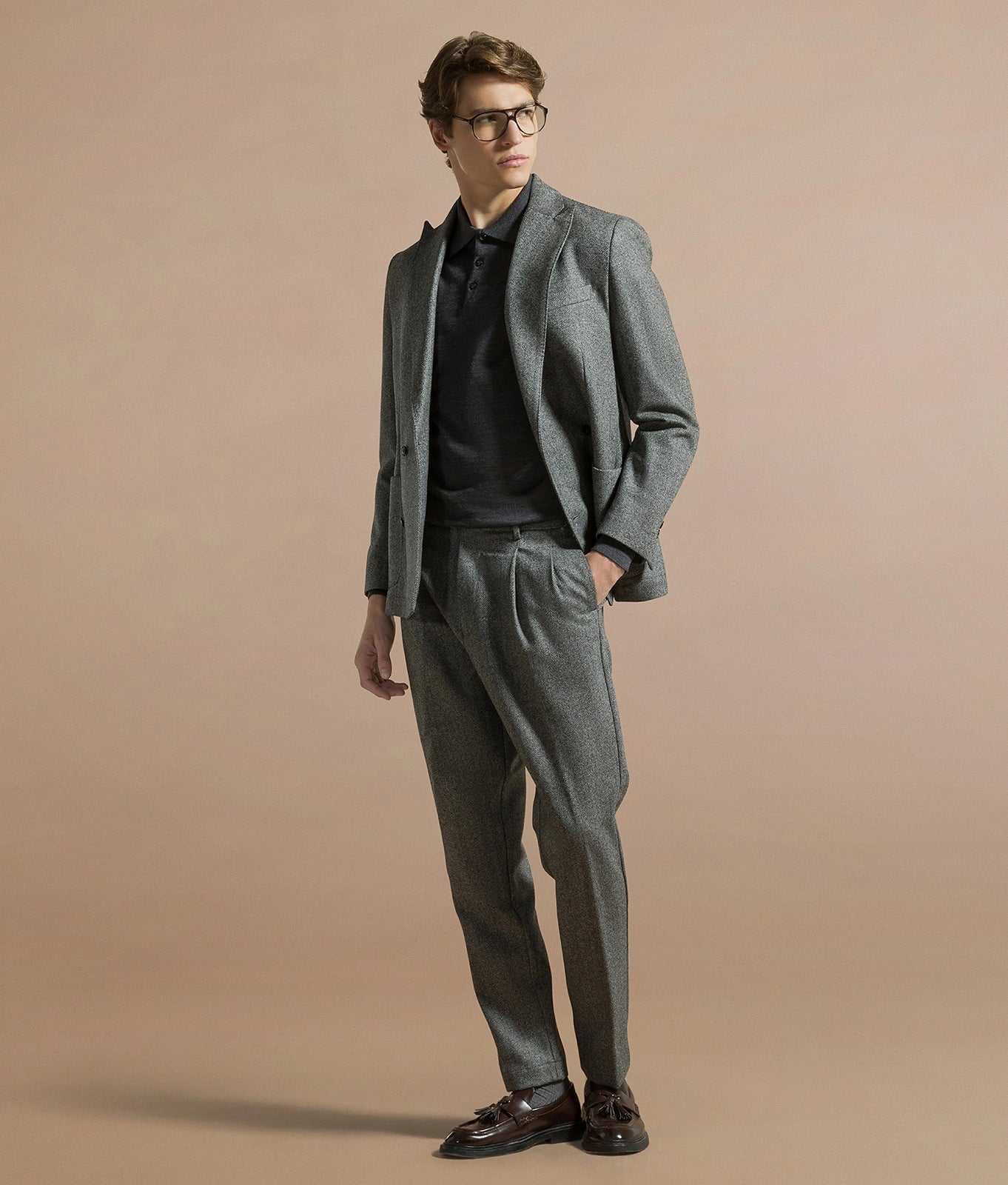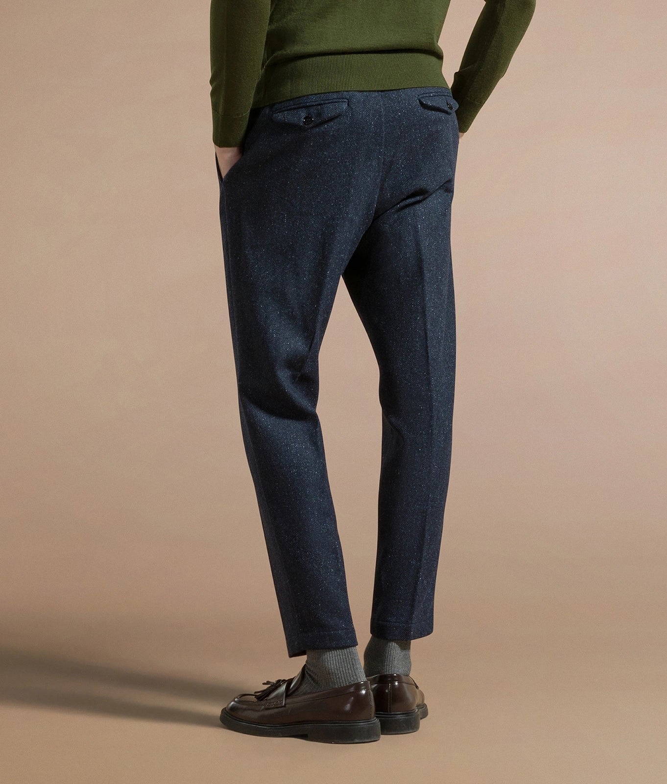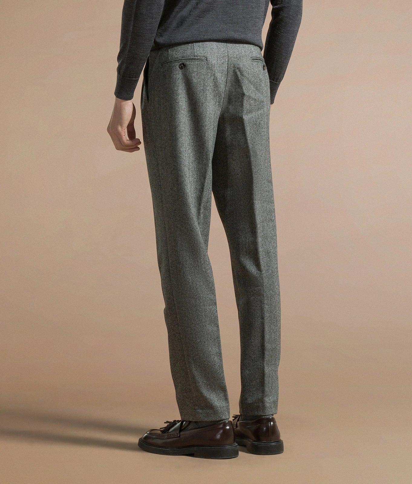 Two-double pince tapered fit trousers in virgin wool herringbone