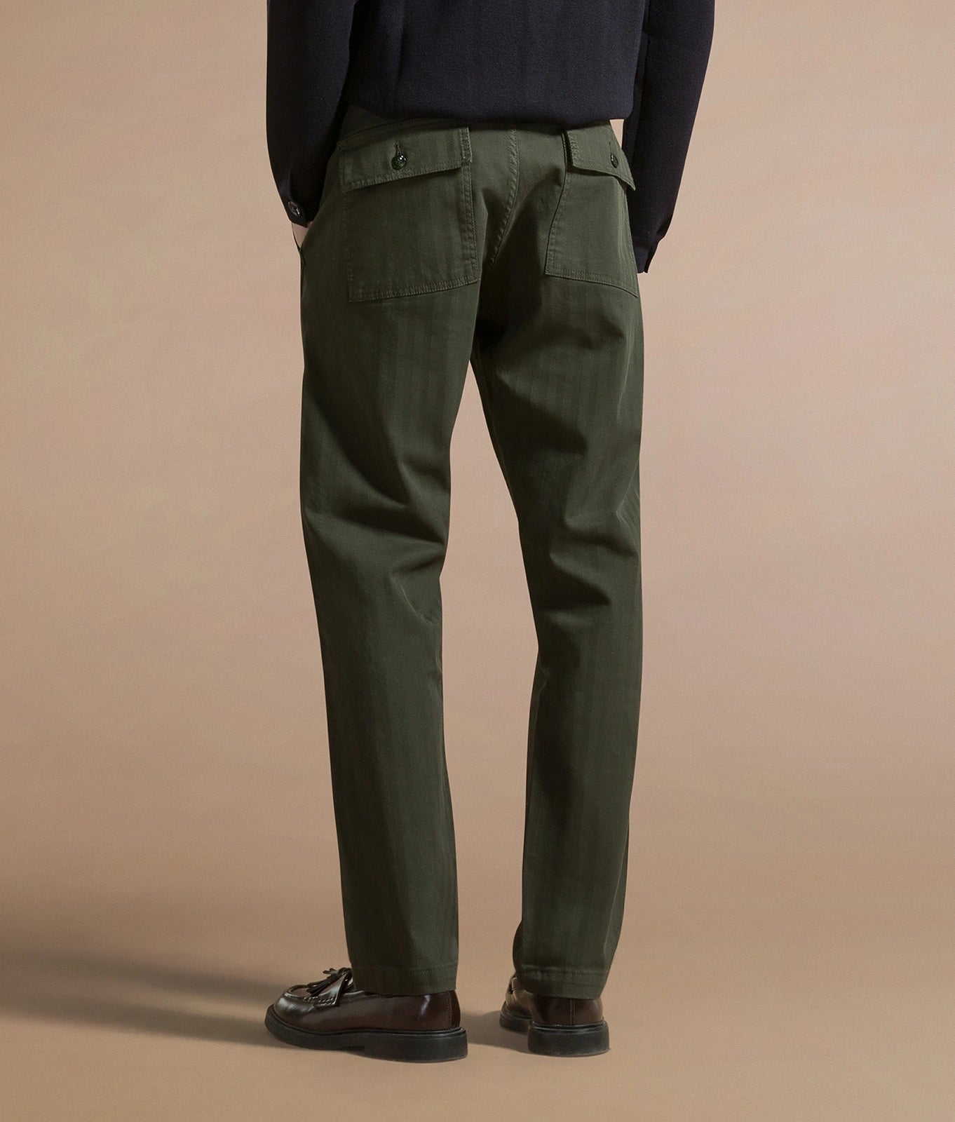 Fatigue trousers in stretch cotton herringbone