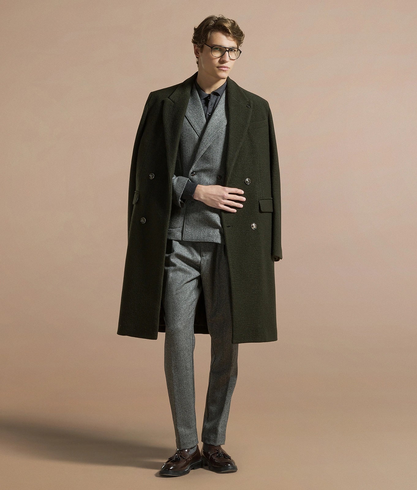 Casentino-effect virgin wool cloth double-breasted coat with martingale