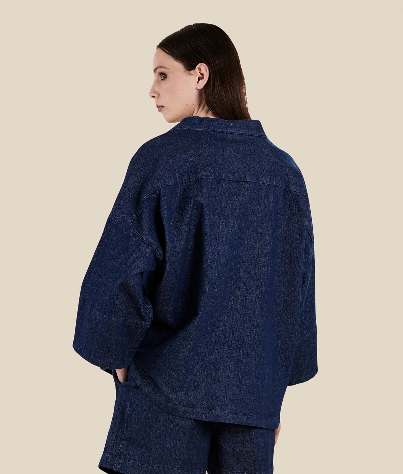 Oversized fit kimono in natural stretch denim