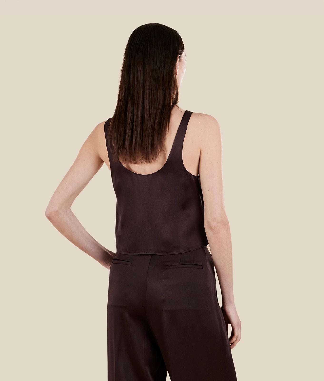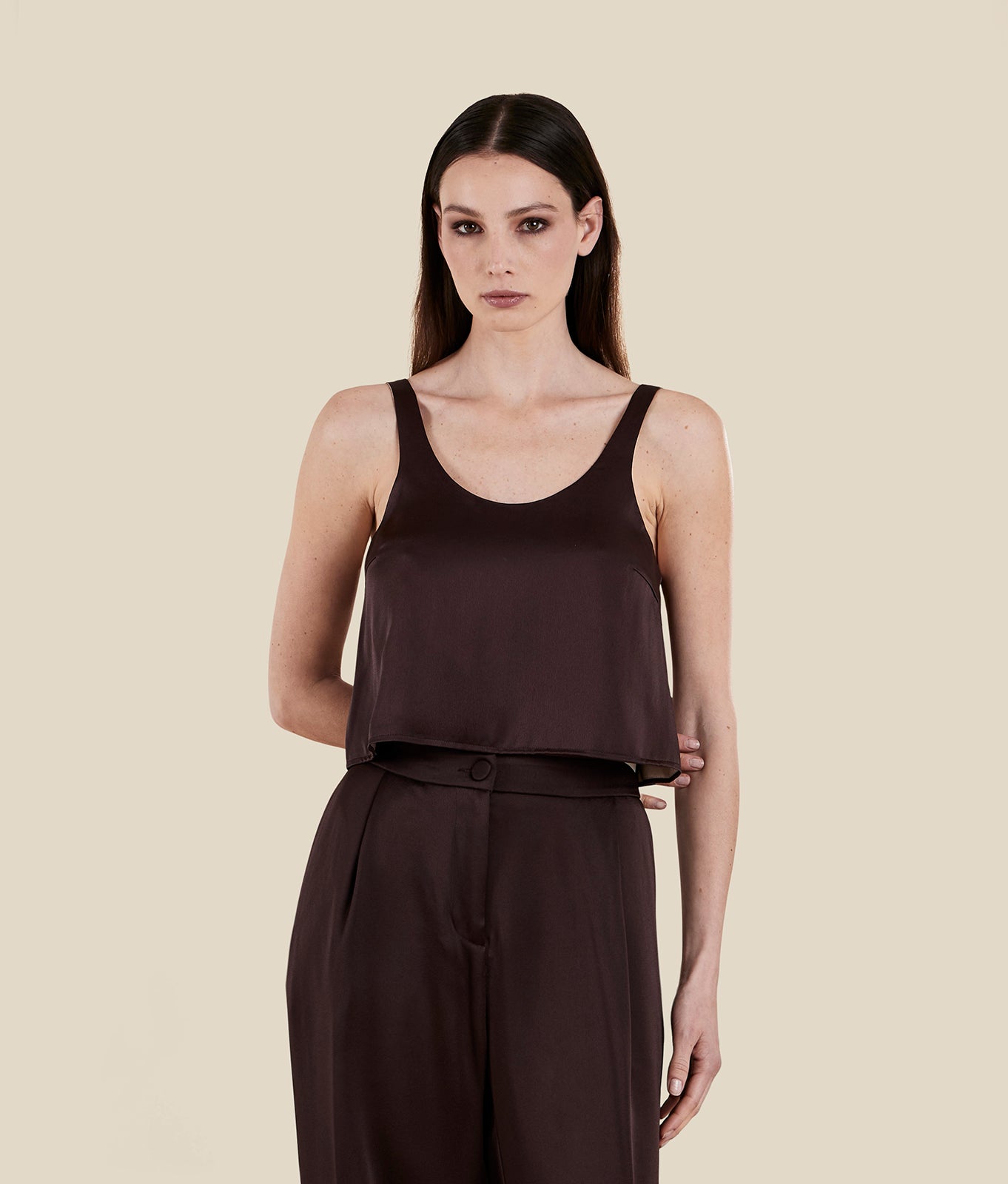 Cropped fit top in viscose fluid satin