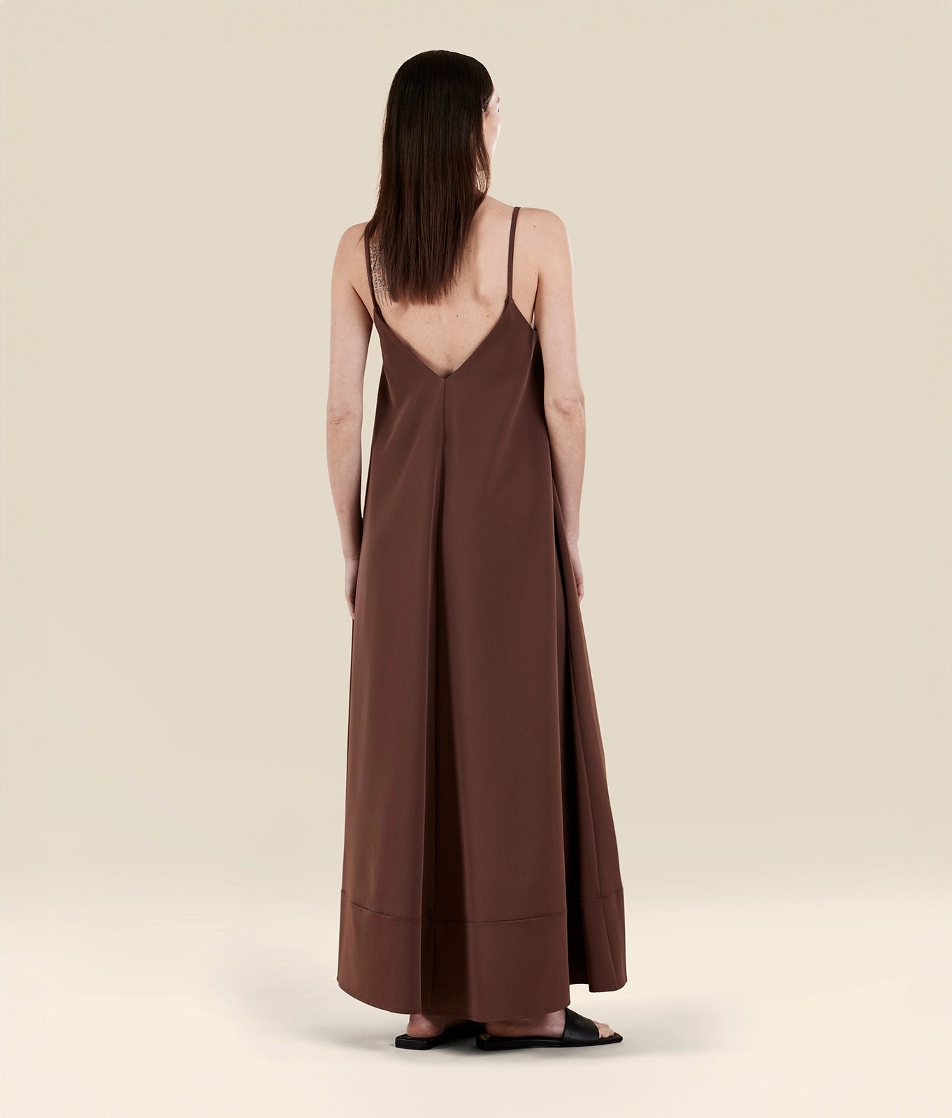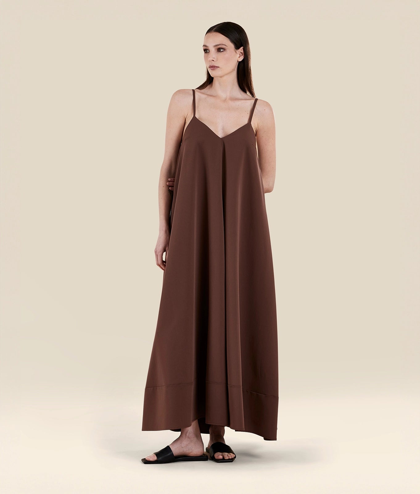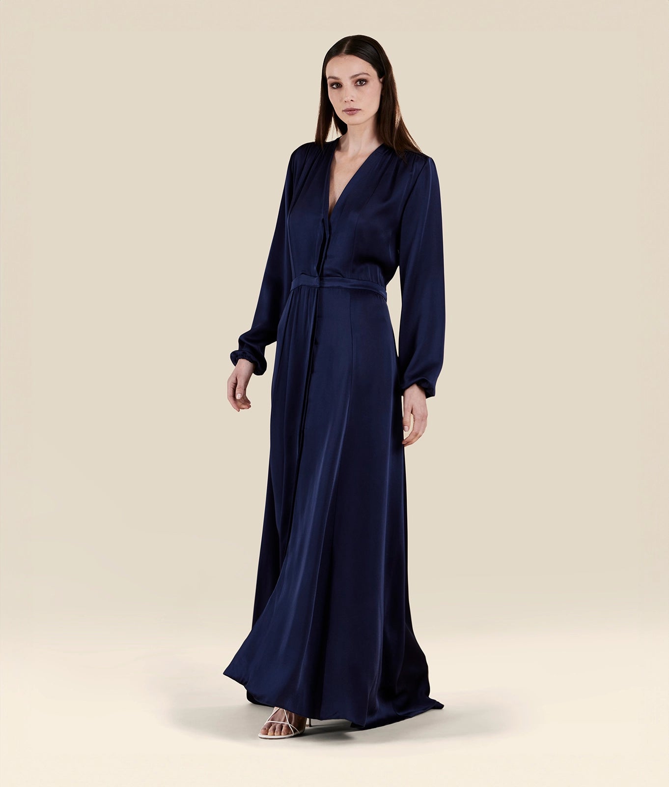 Full-length dress in washed silk-effect
