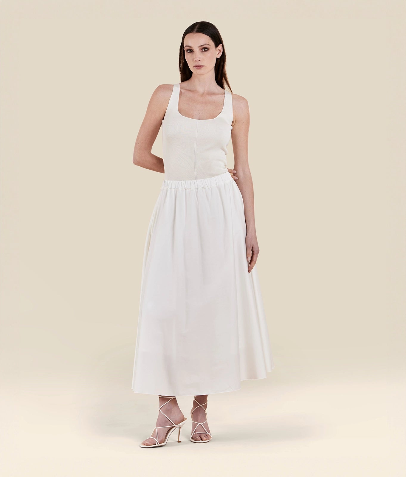 Full skirt in stretch cotton blend tech popline