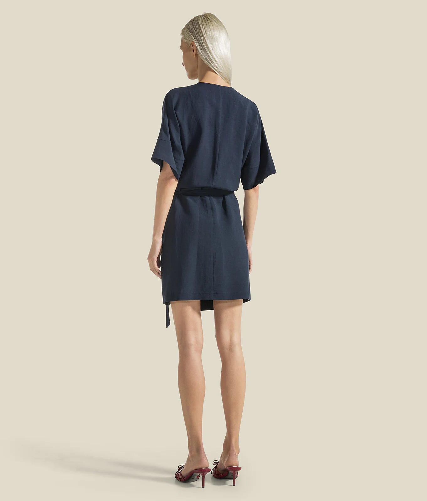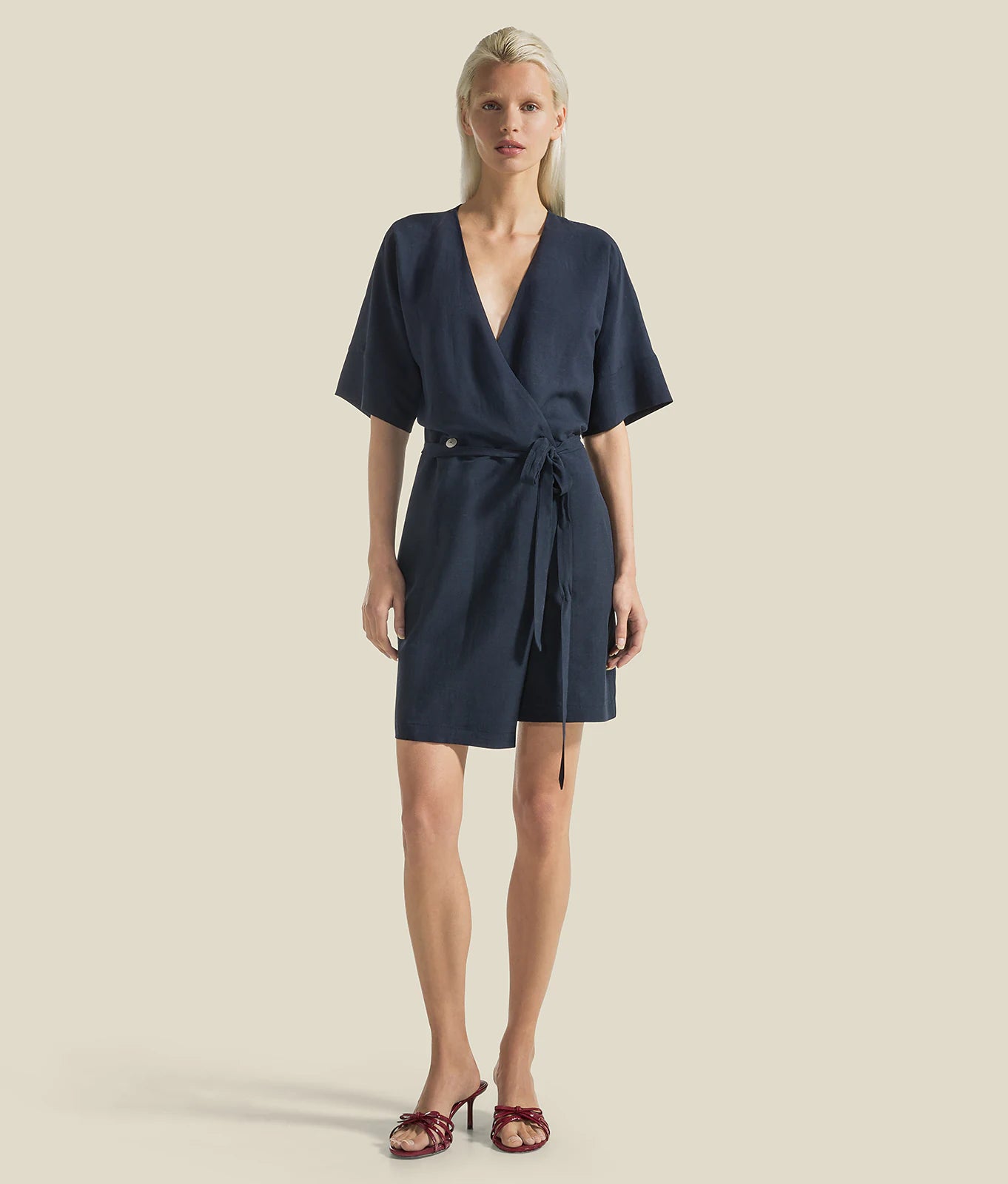 Regular fit wrap dress in viscose and linen blend