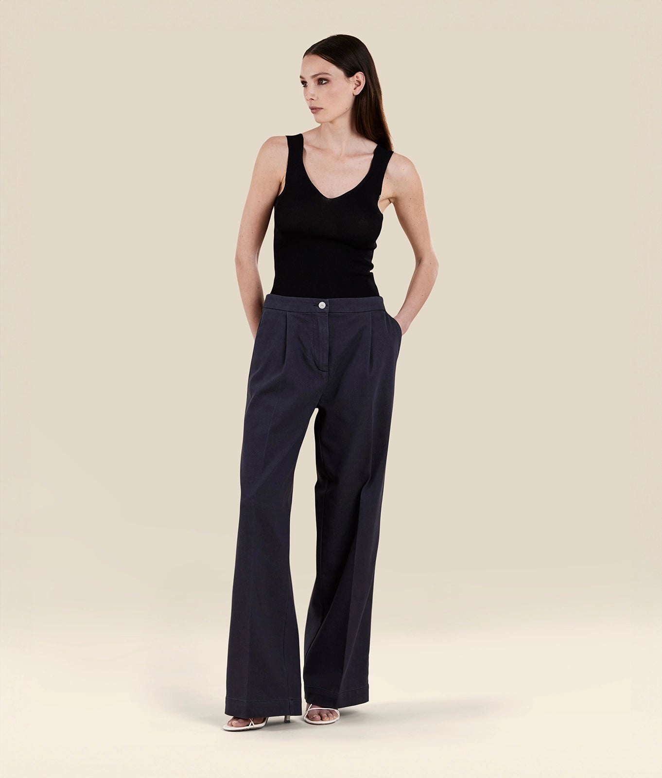 Loose fit trousers with single darts in luxory stretch viscose