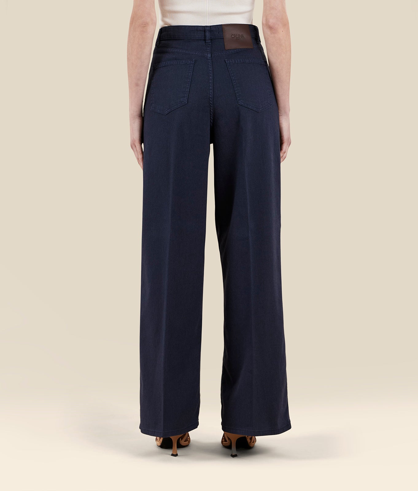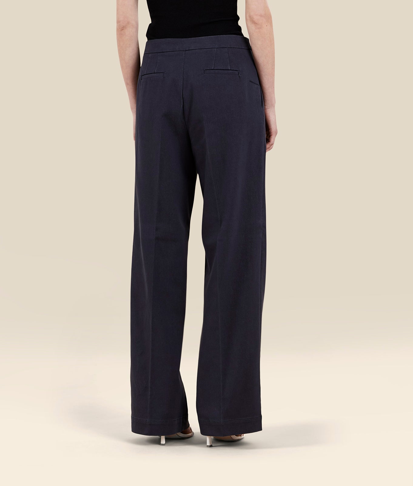 loose fit trousers with darts in gabardine denim effect