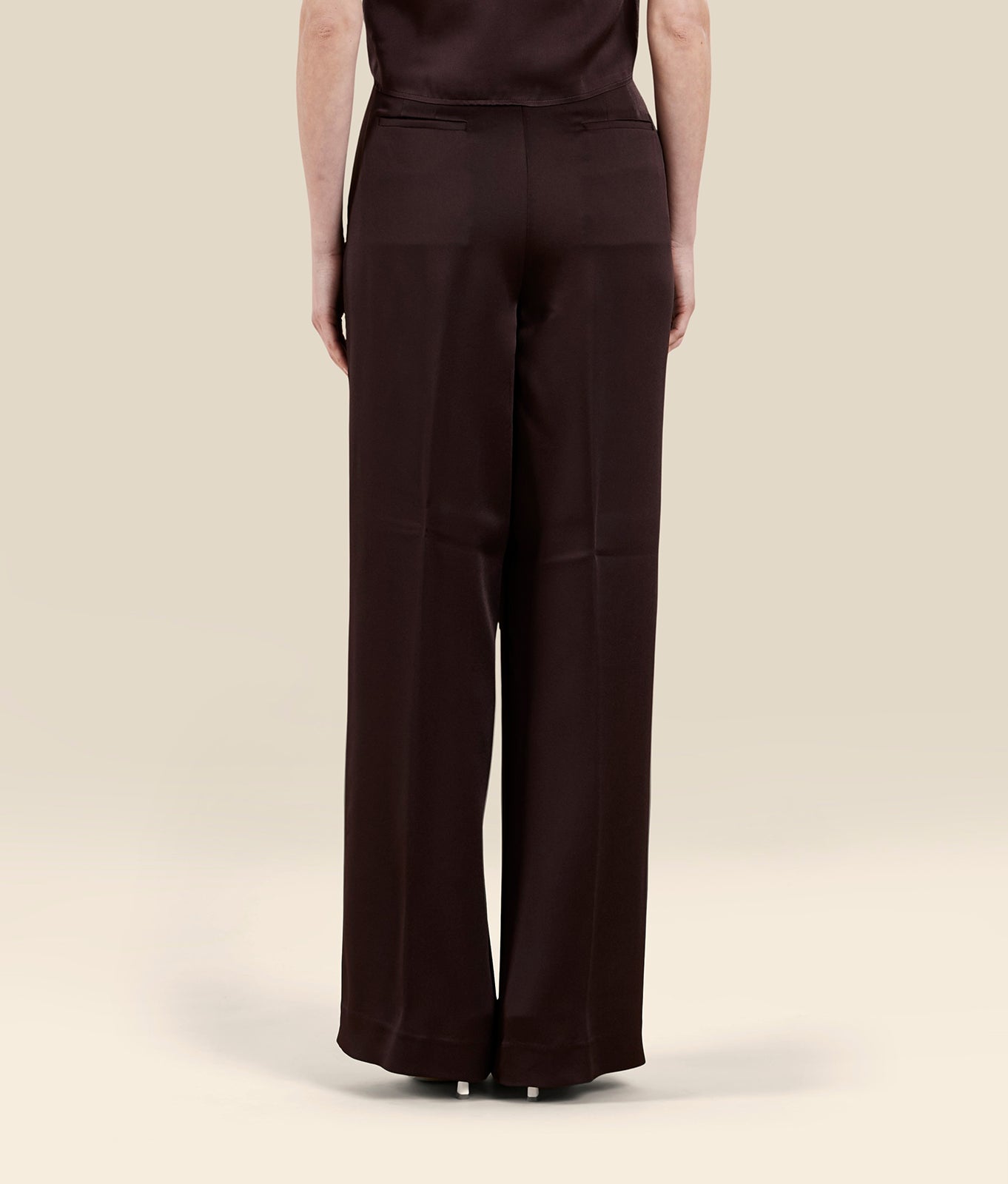 loose-fitting trousers with pleats in fluid viscose-blend satin