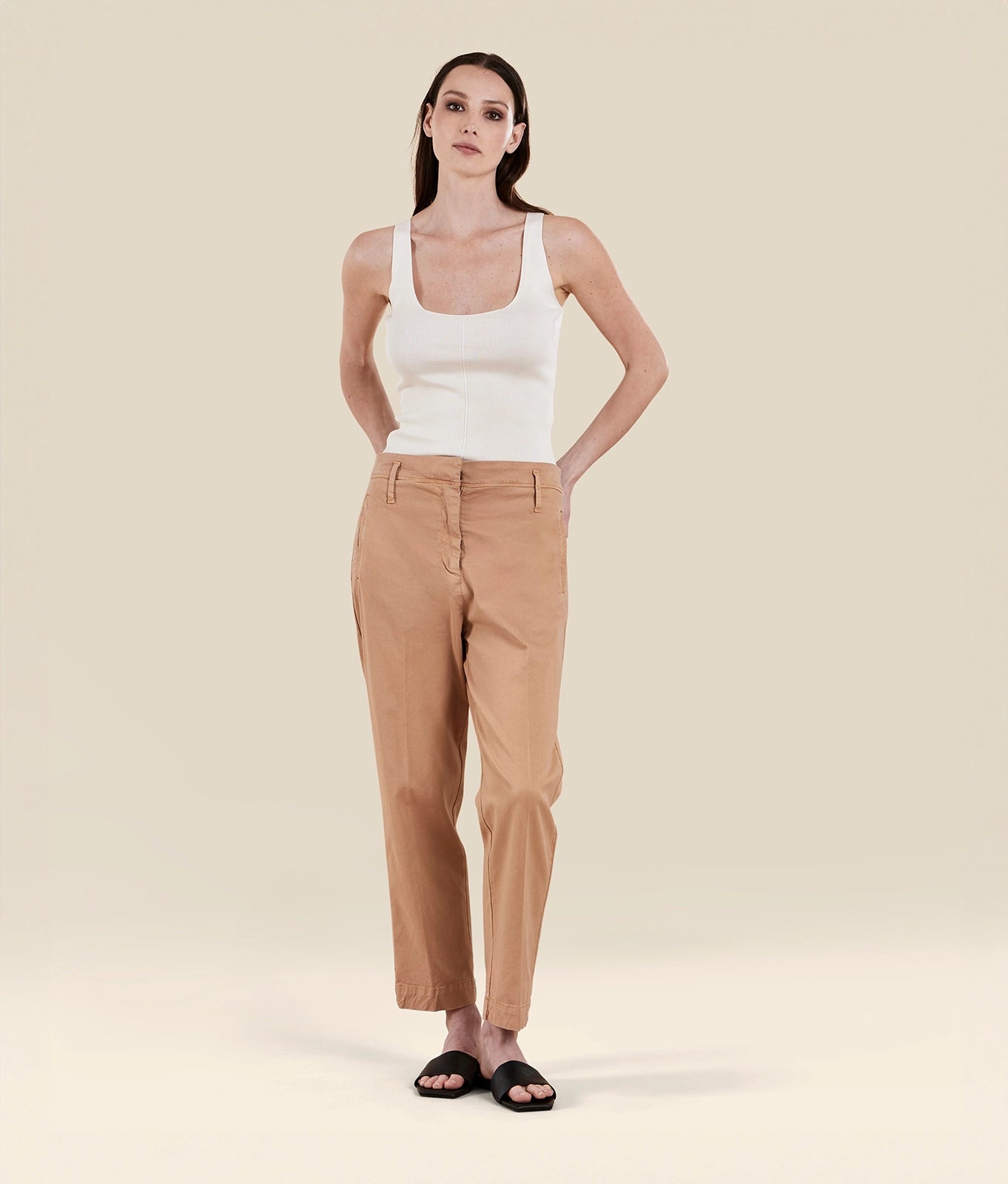 Barrel fit trousers in cotton blend stretch gabardine