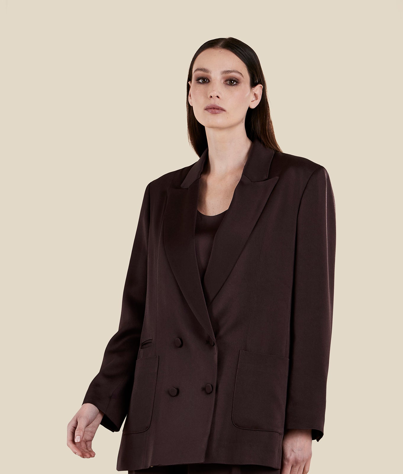 Overisized fit blazer in viscose blend fluid satin