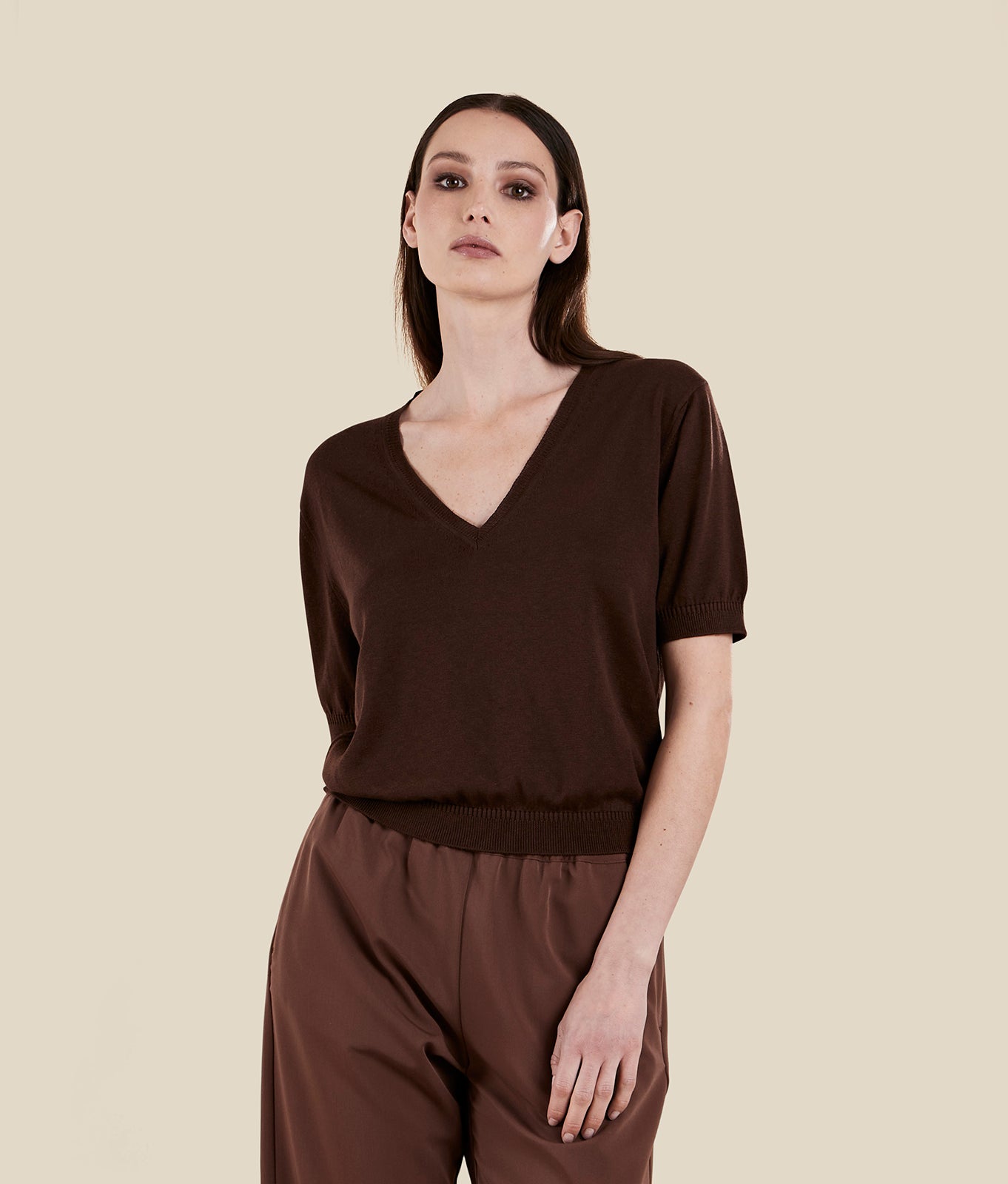 Silk and cotton V-neck knit T-shirt