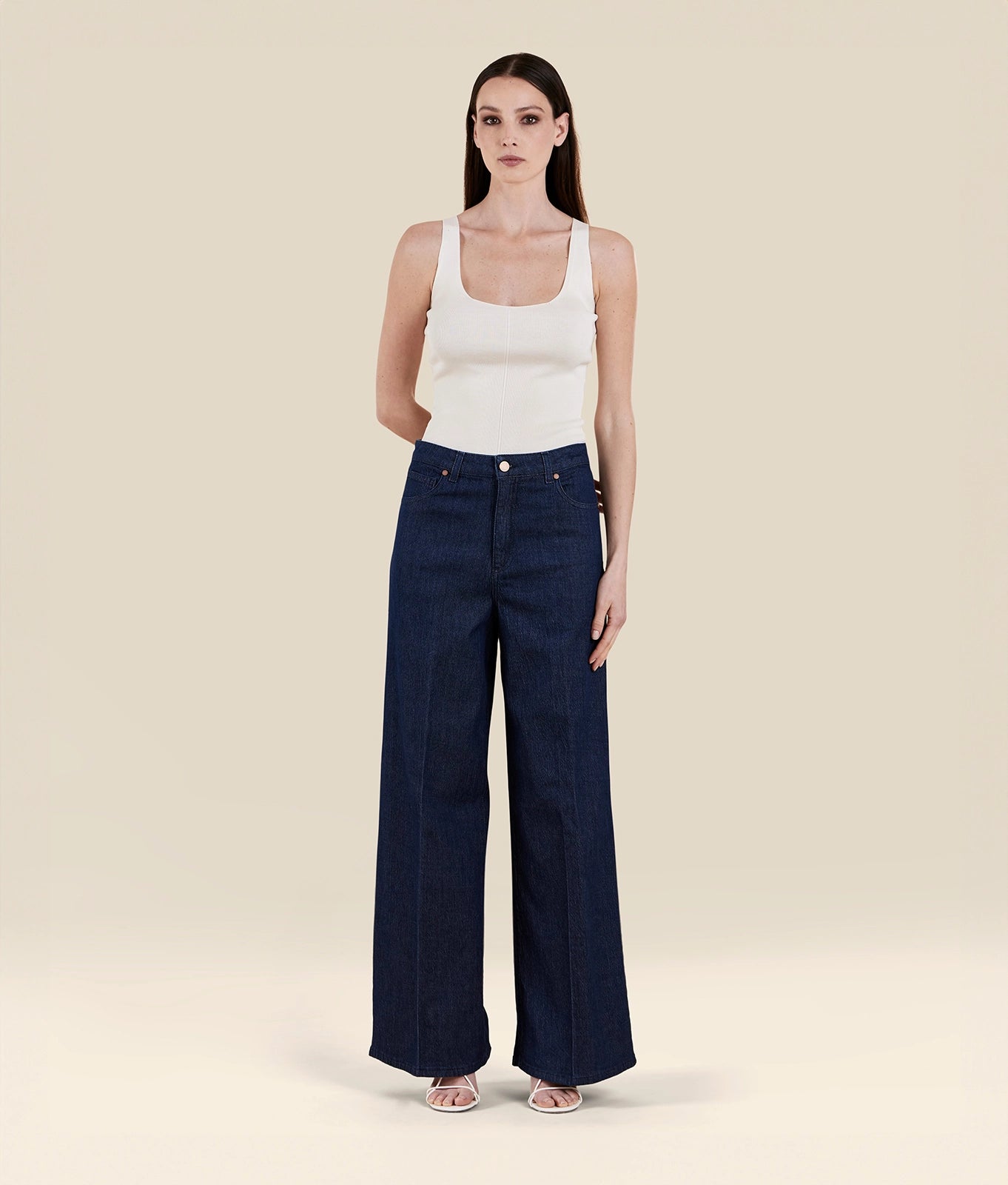 Wide-leg trousers in washed silk-effect twill