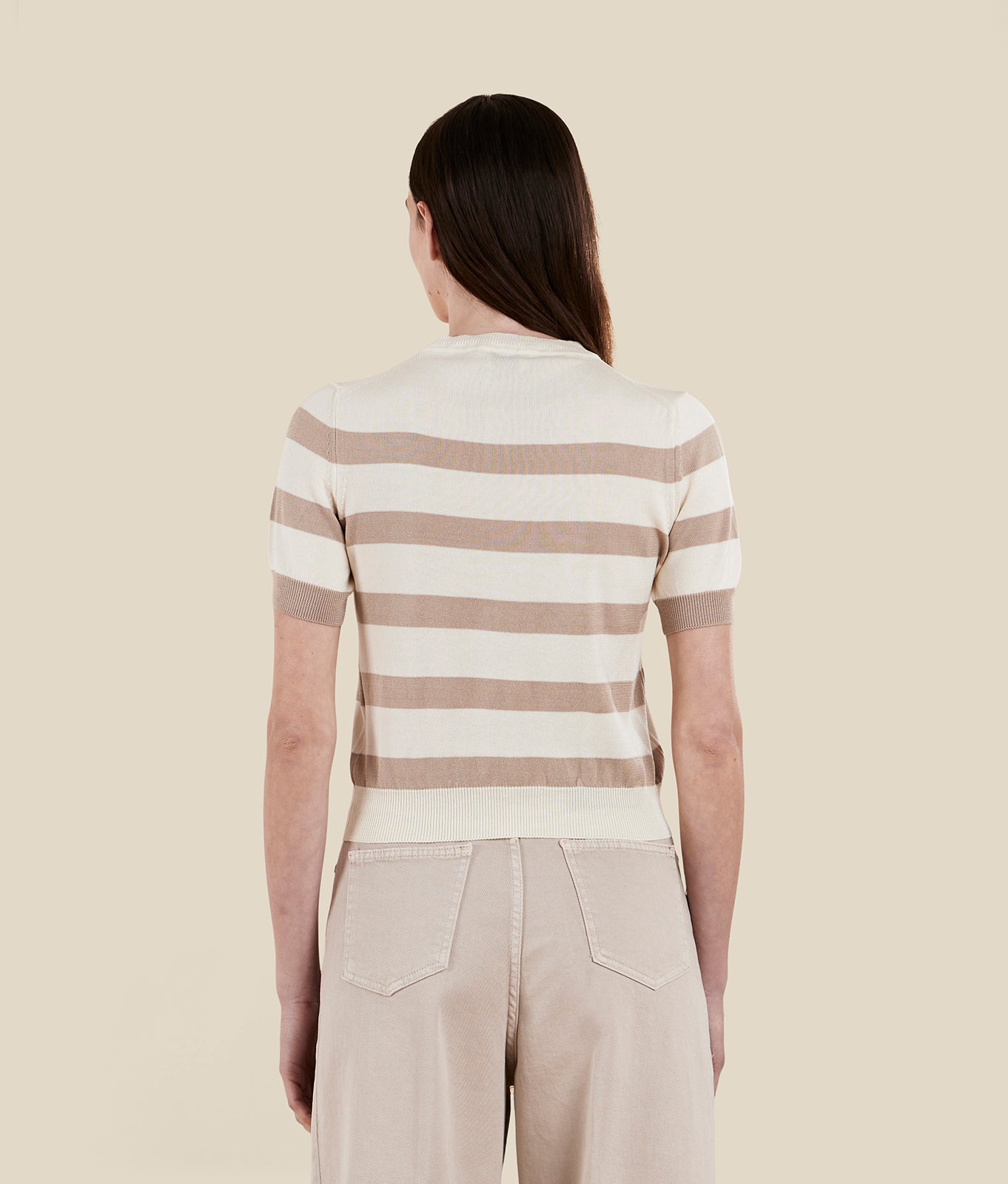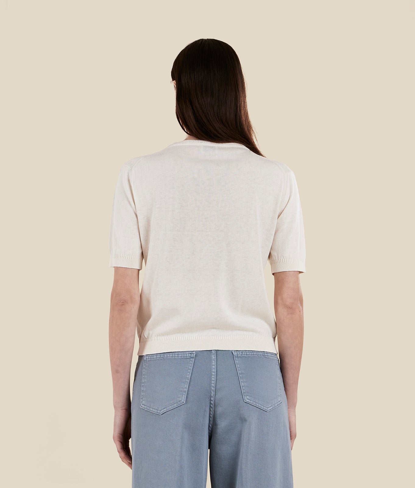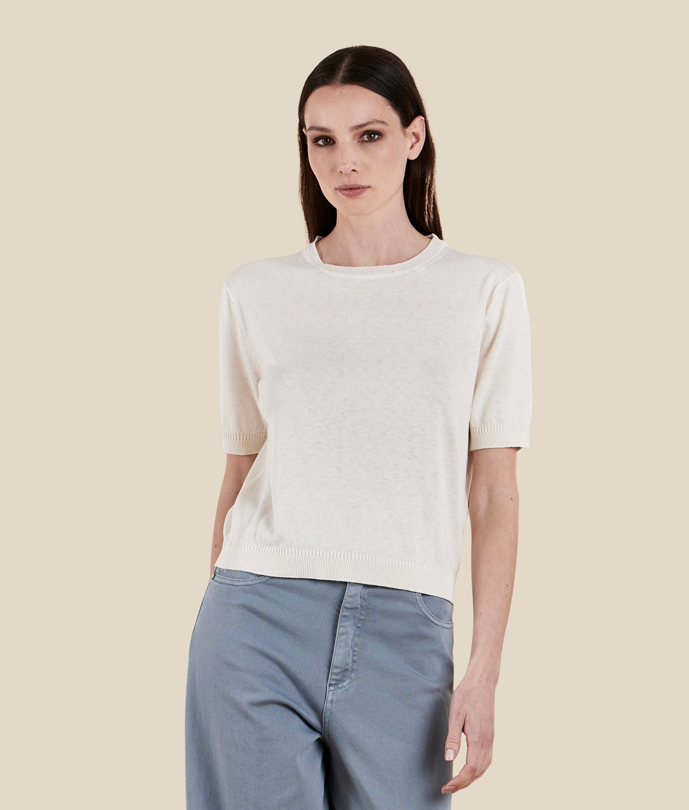 Crew-neck knit T-shirt in silk and cotton yarn