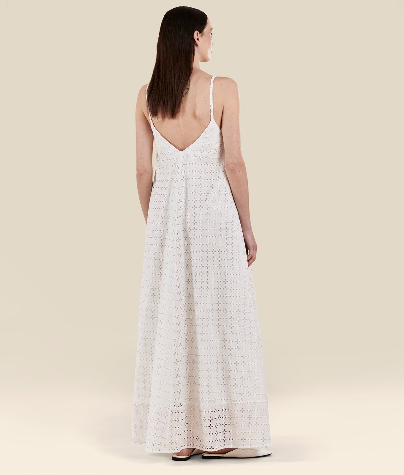 Full length dress in cotton Broderie Anglaise