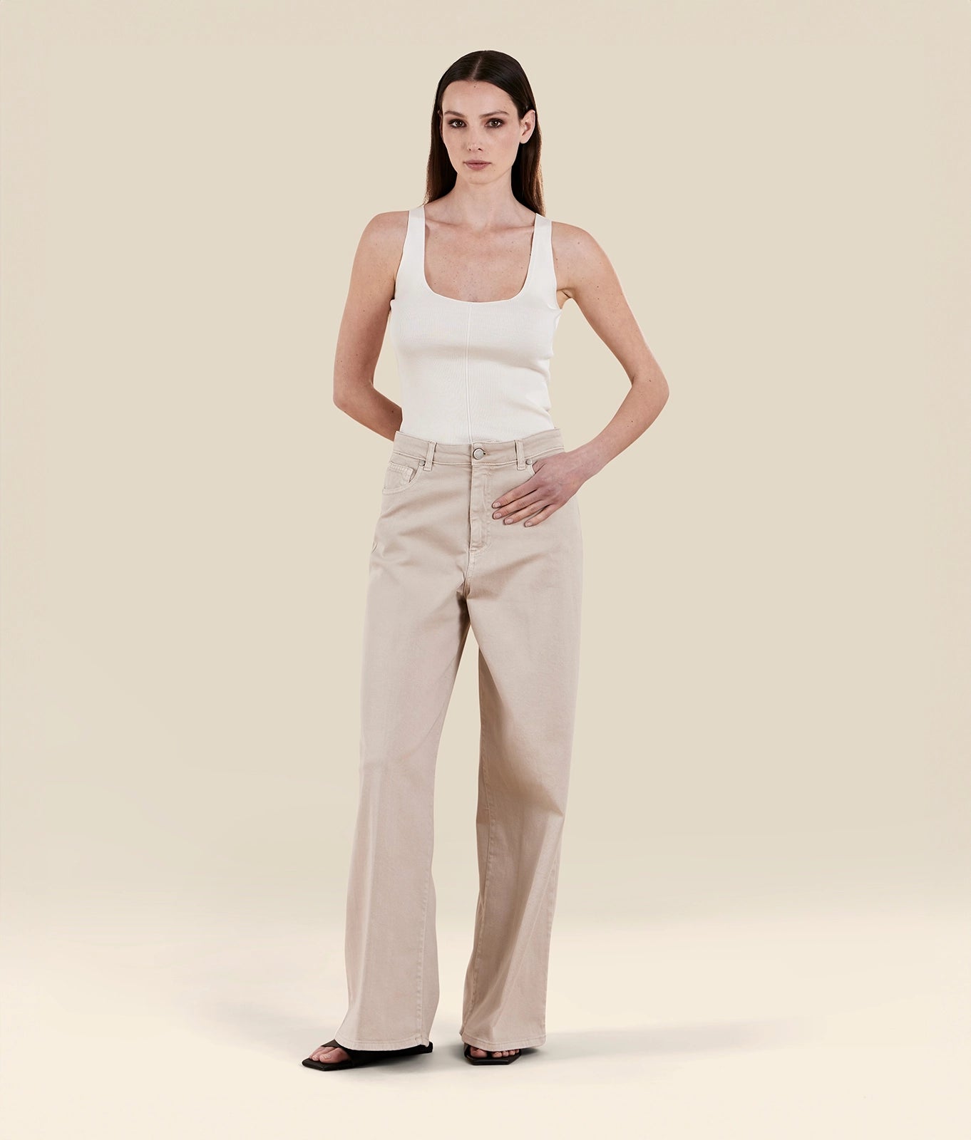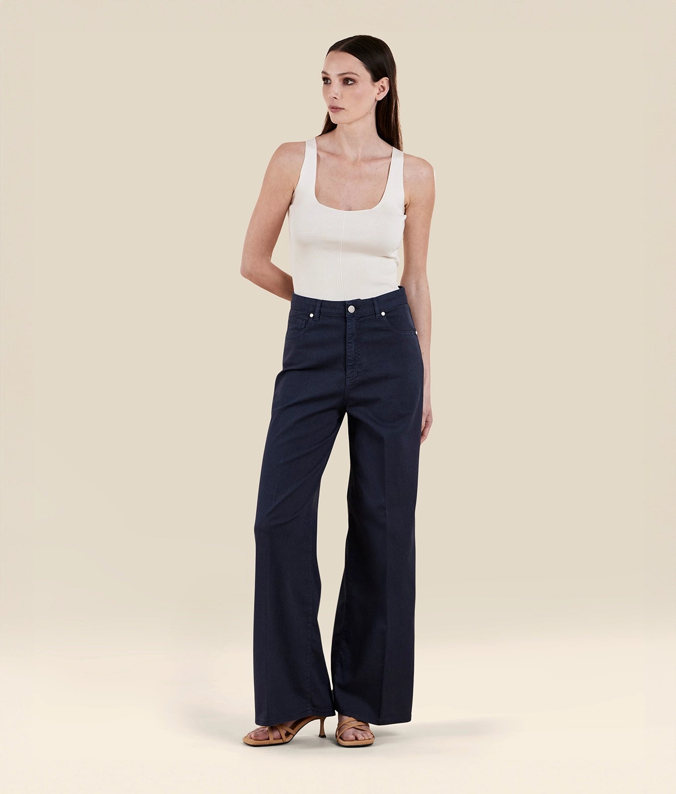 wide trousers with elasticated waist in lyocell twill