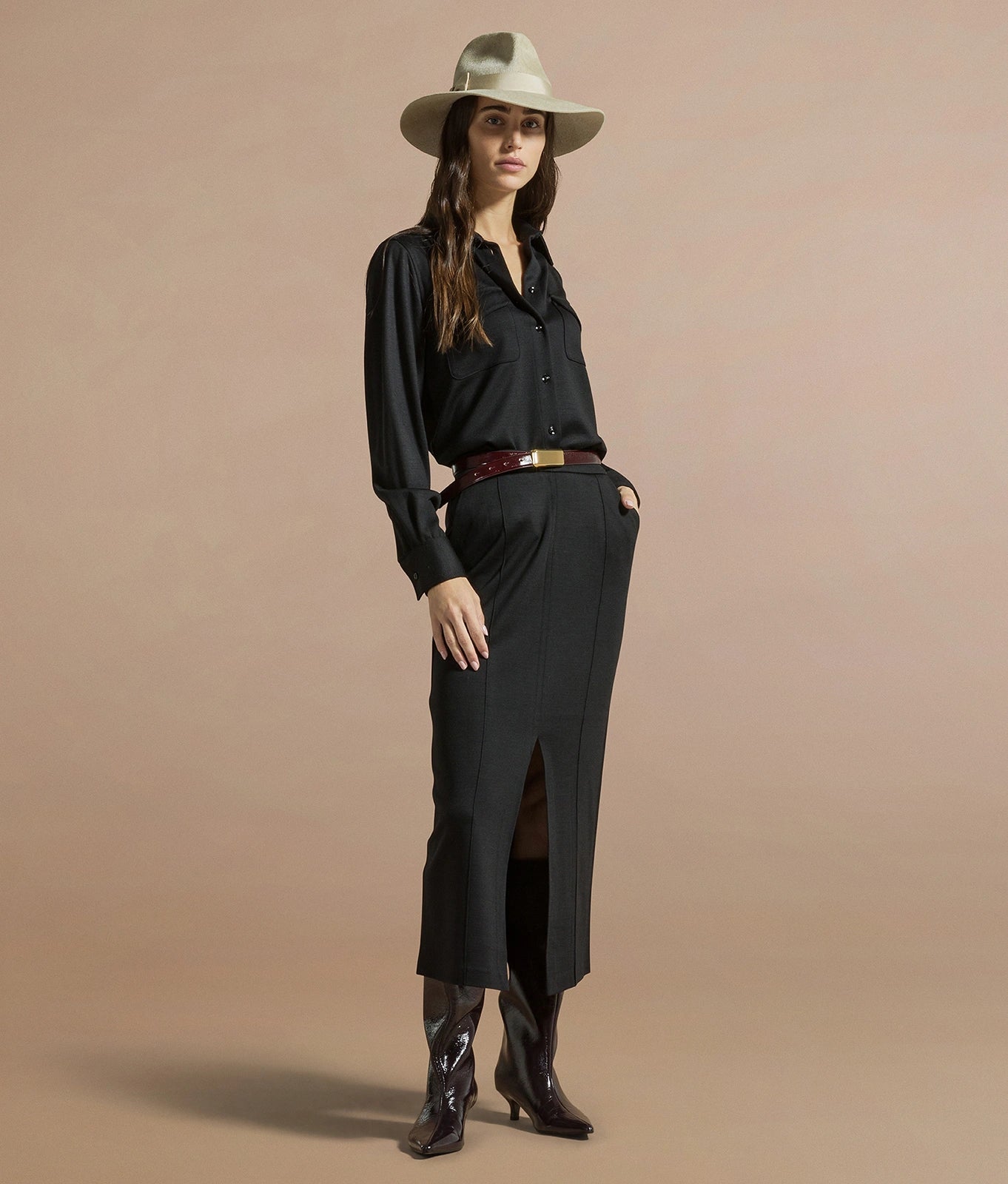 Shirt with patch pockets in viscose blend gabardine
