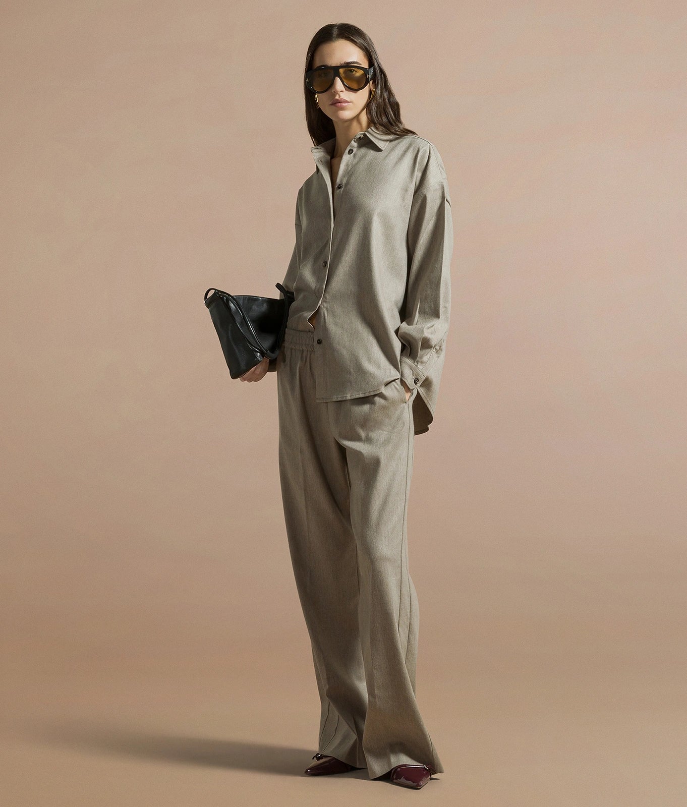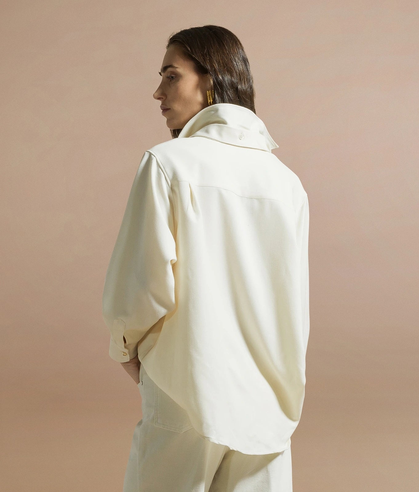 Oversized shirt with removable foulard in fluid gabardine