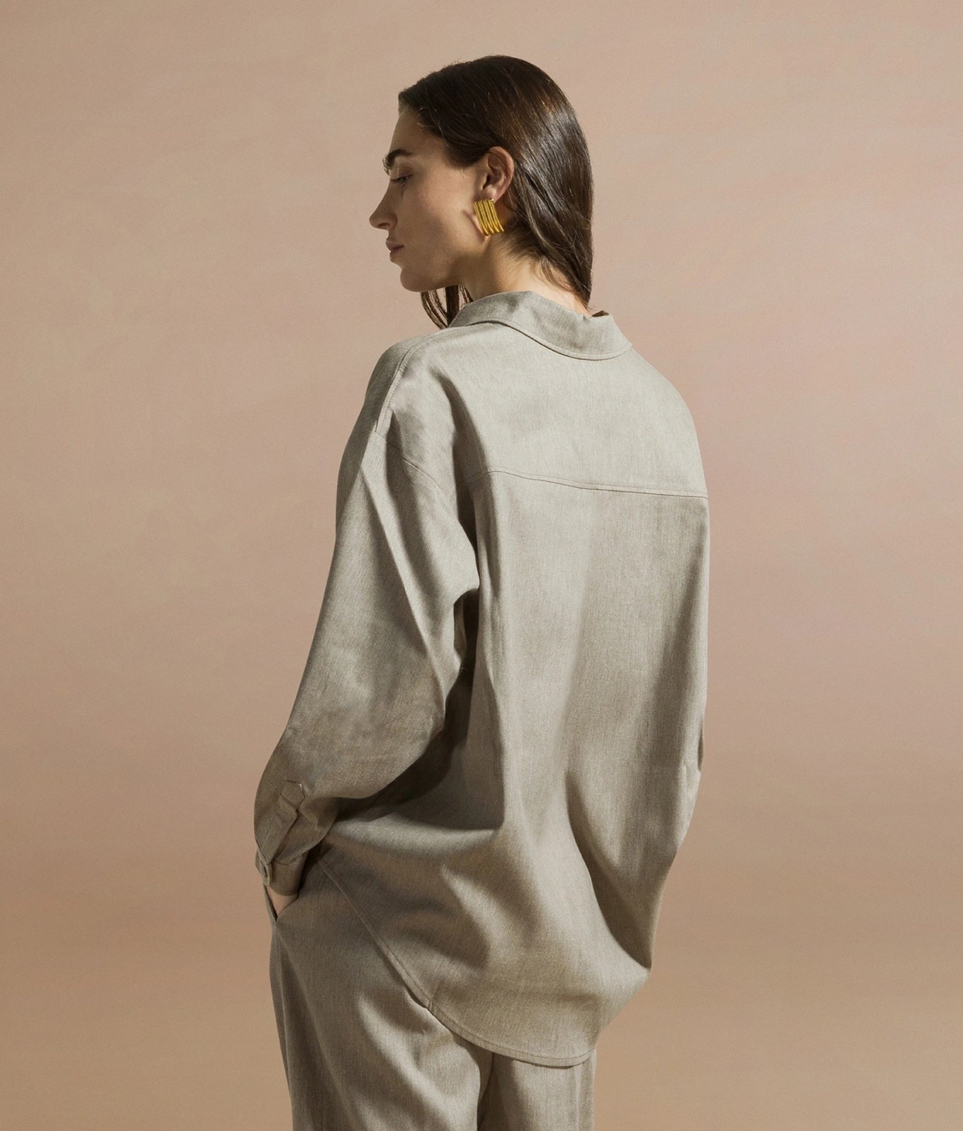 Metal button details on collar and cuffs