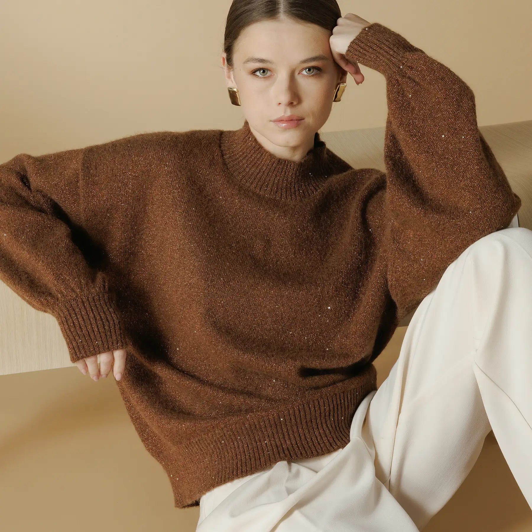 Boxy fit turtleneck sweater in mohair wool
