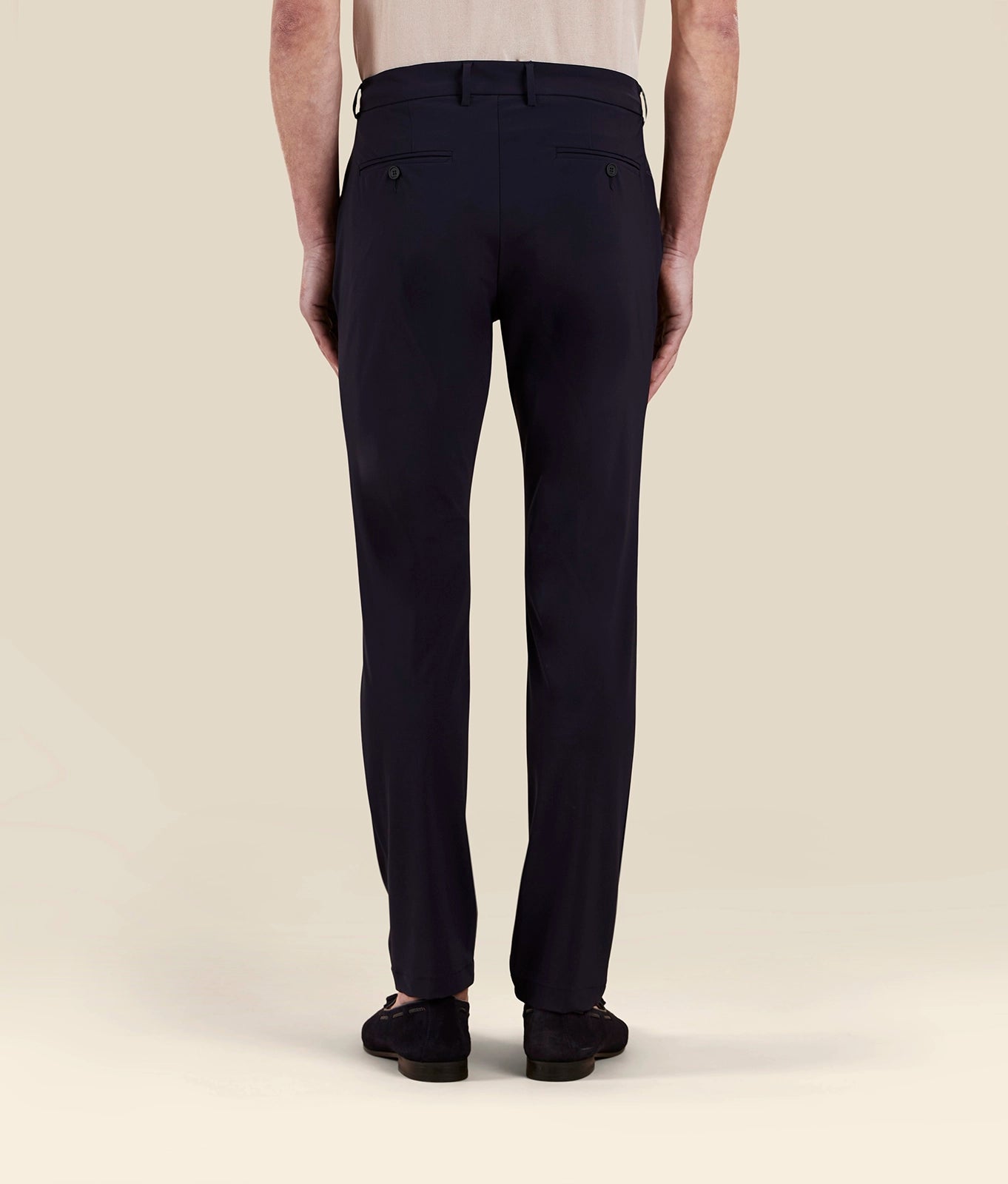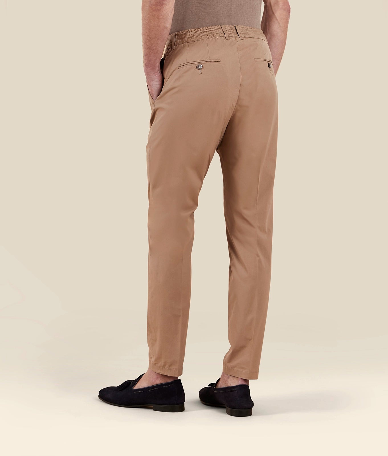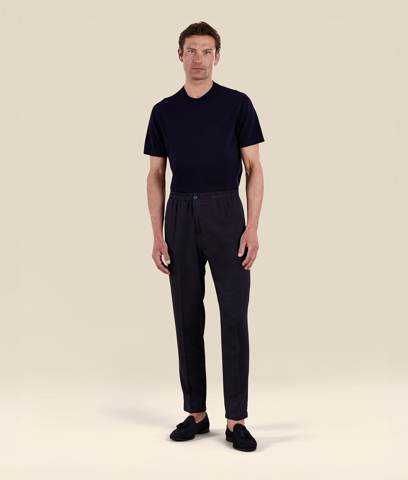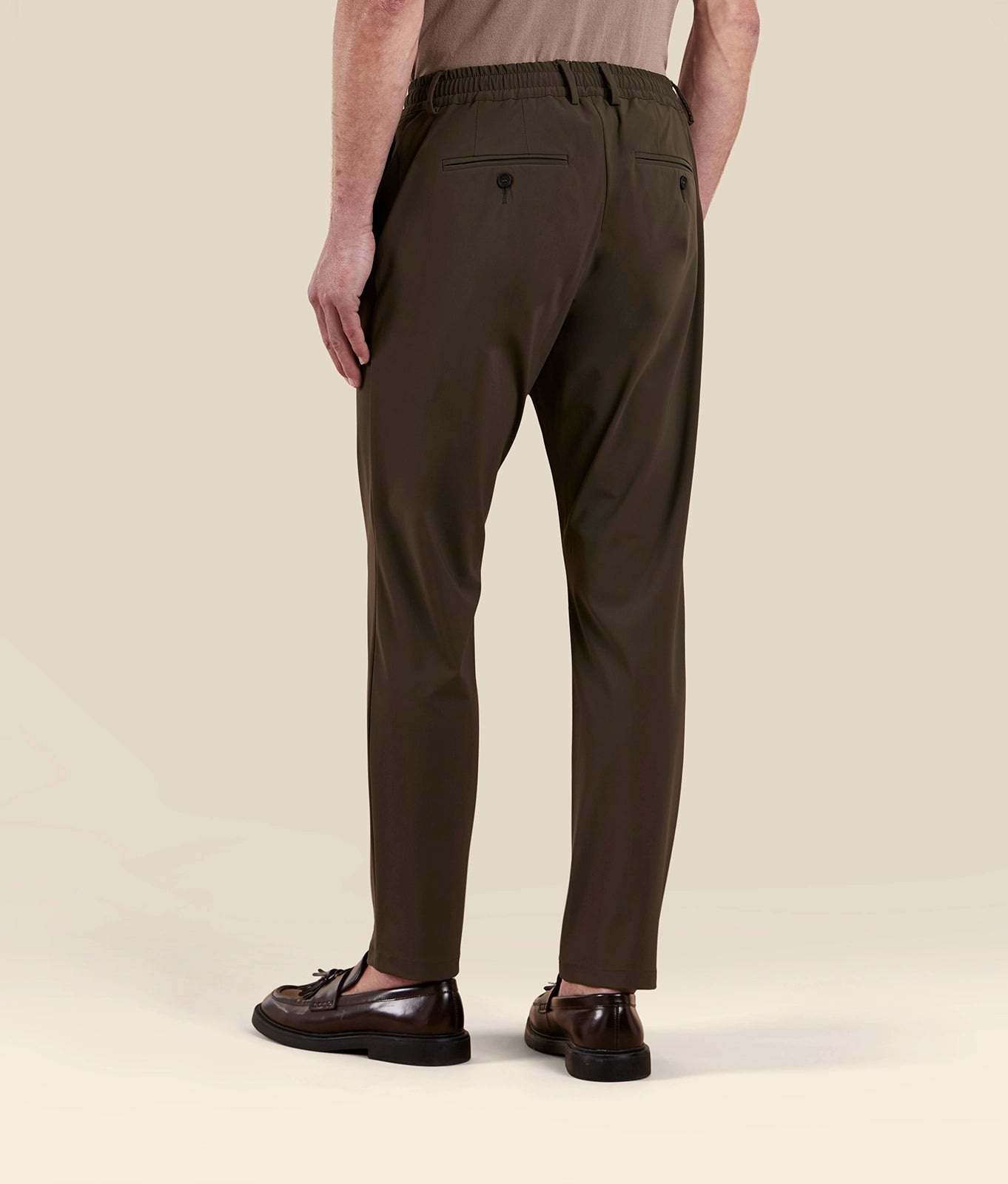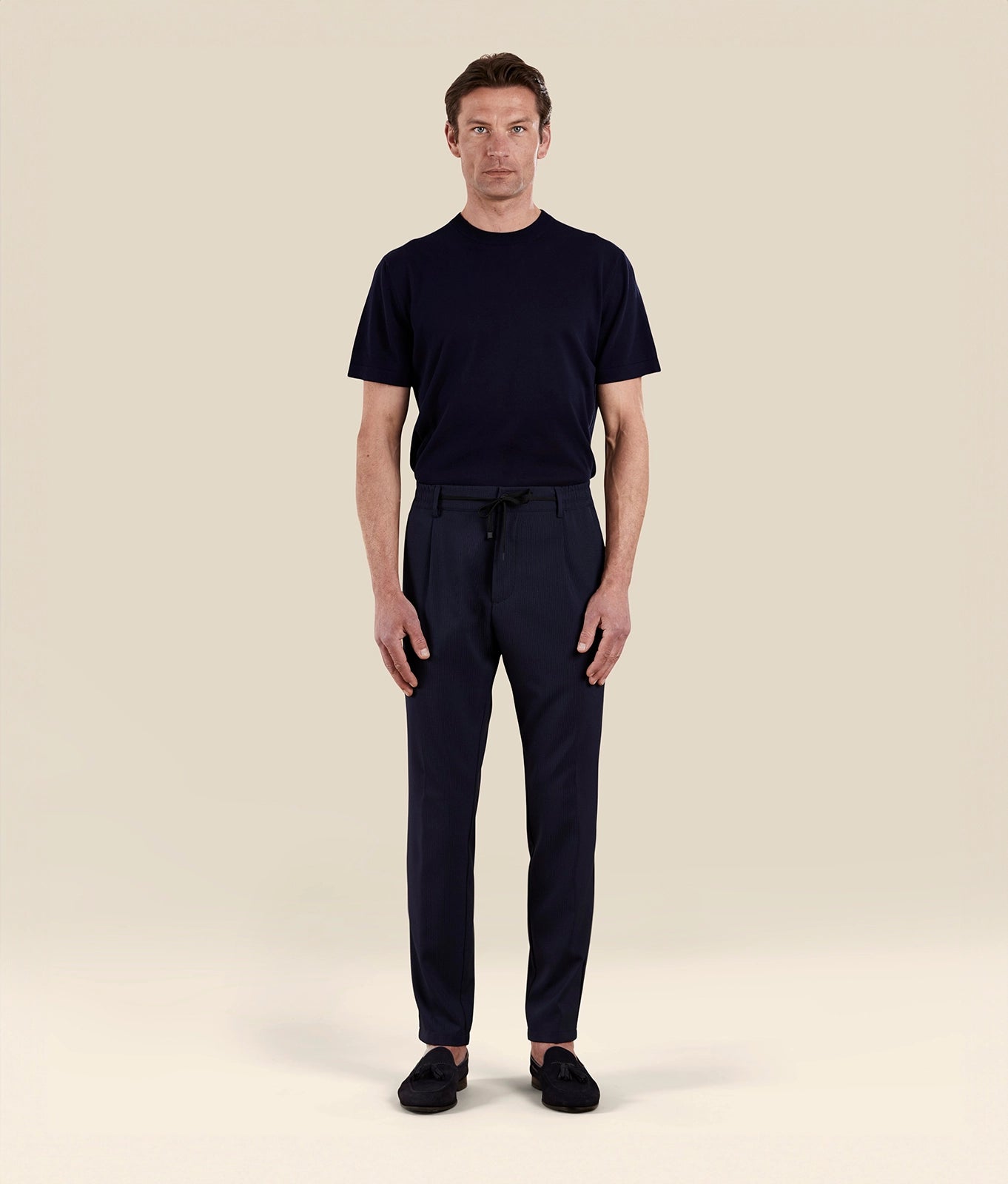 Tapered fit trousers with elasticated belt in ultra stretch virgin wool