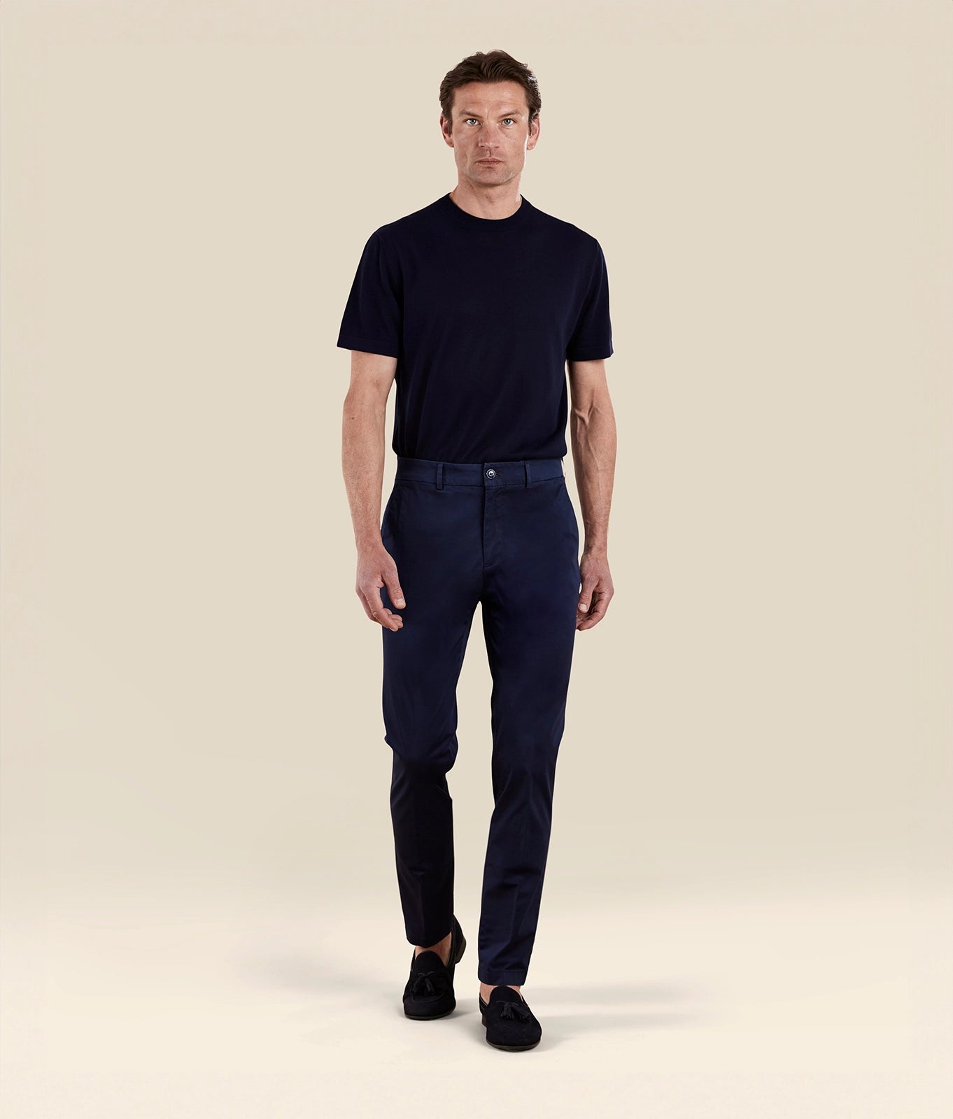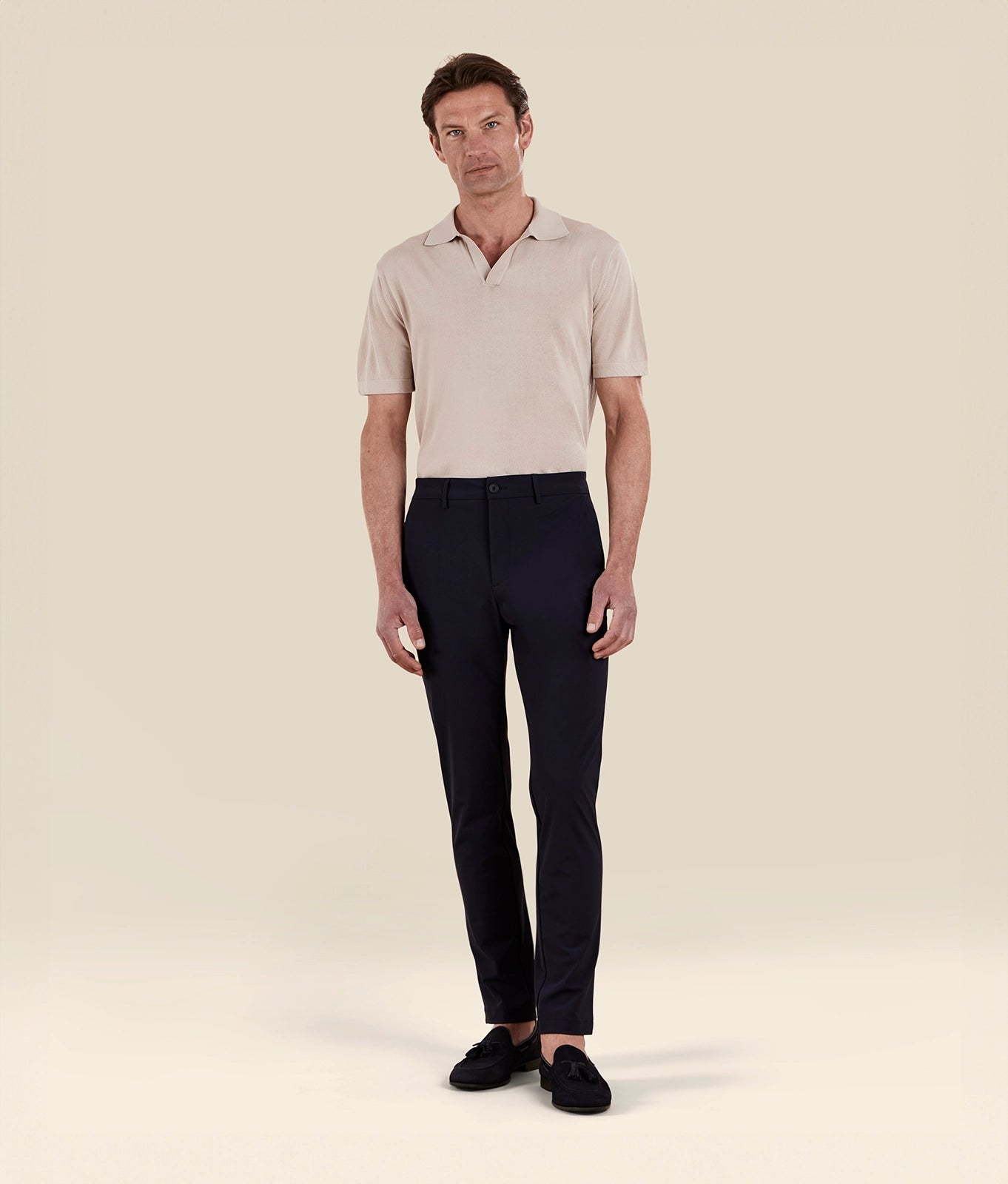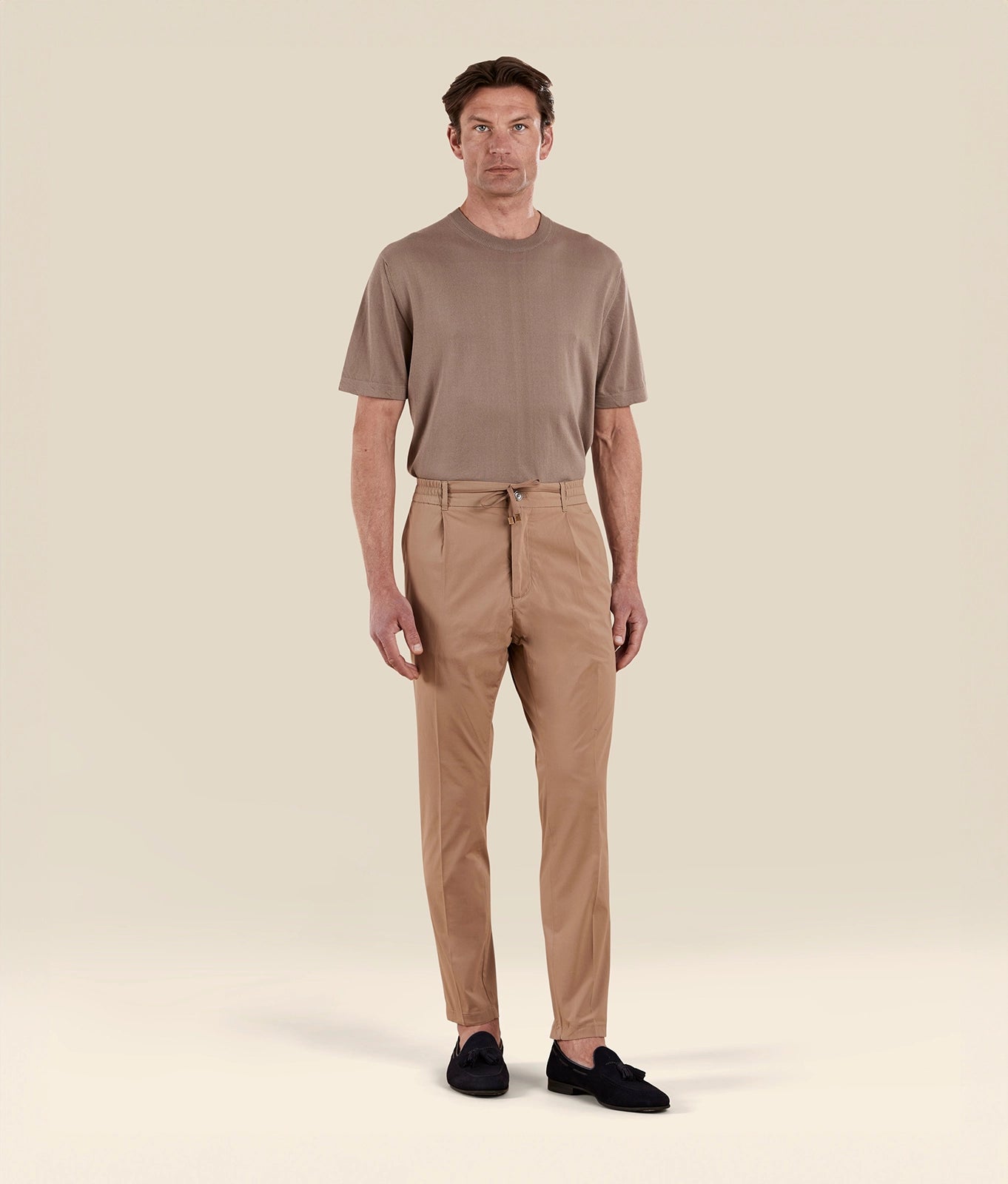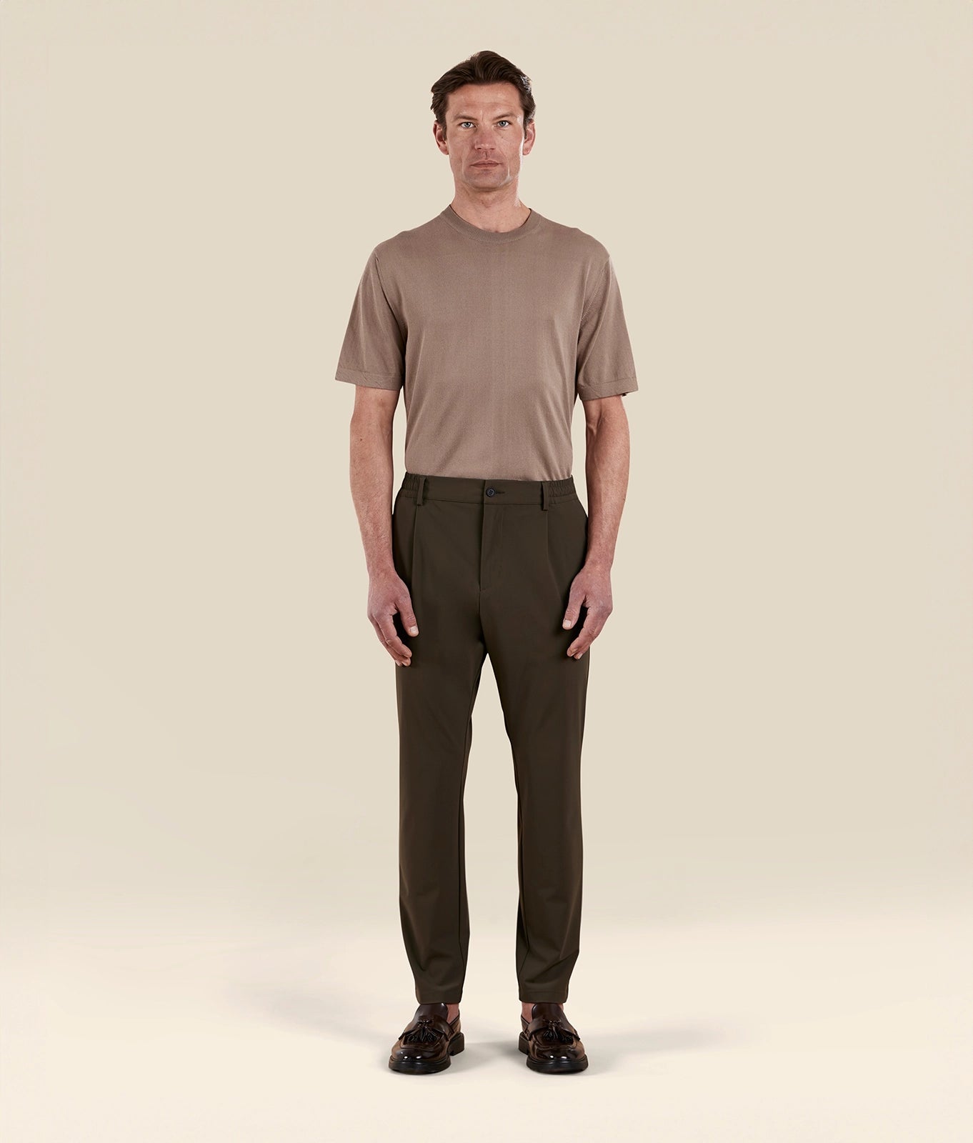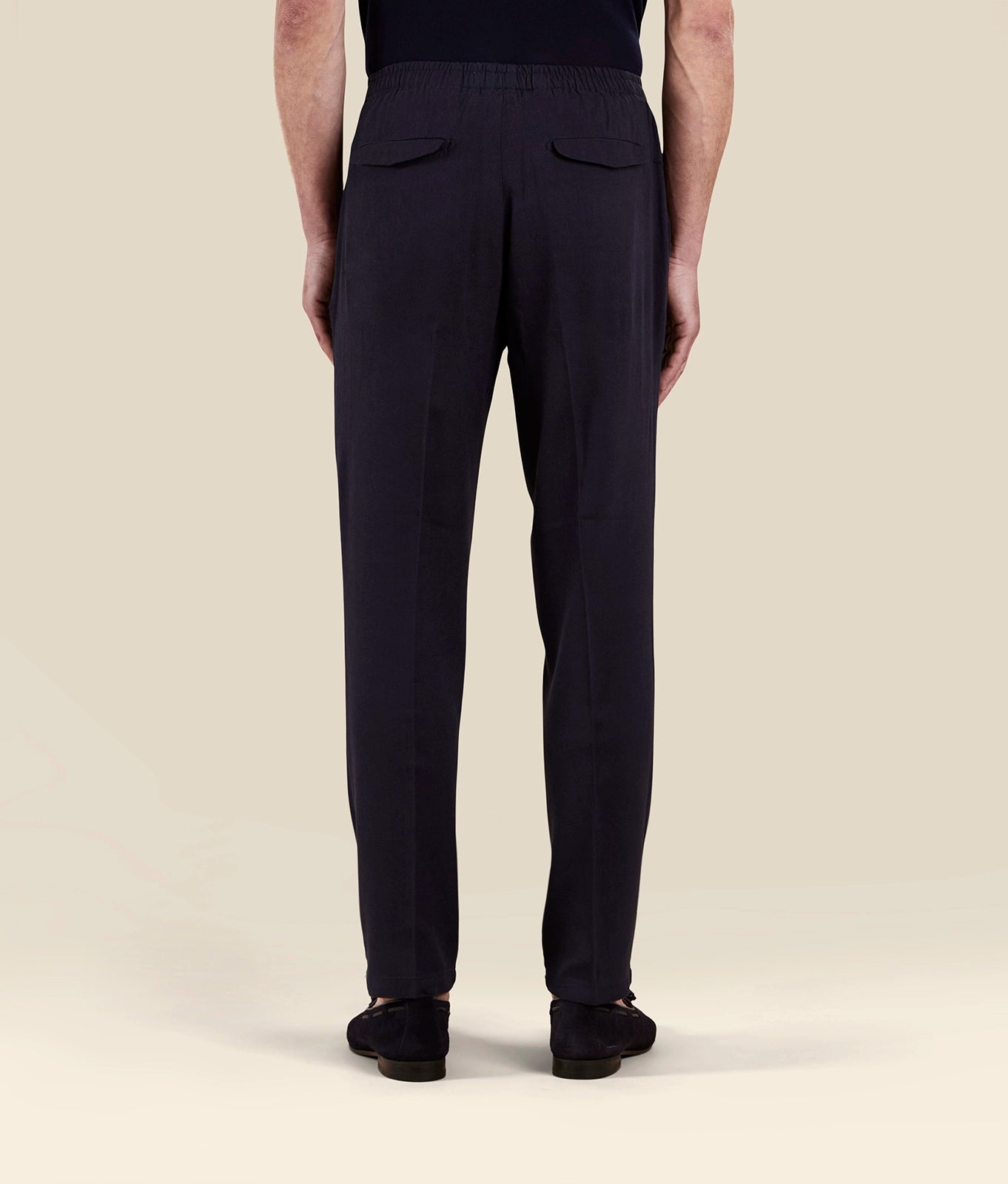 Tapered fit trousers with elasticated belt in ultra stretch virgin wool