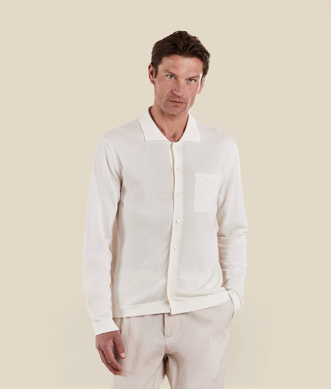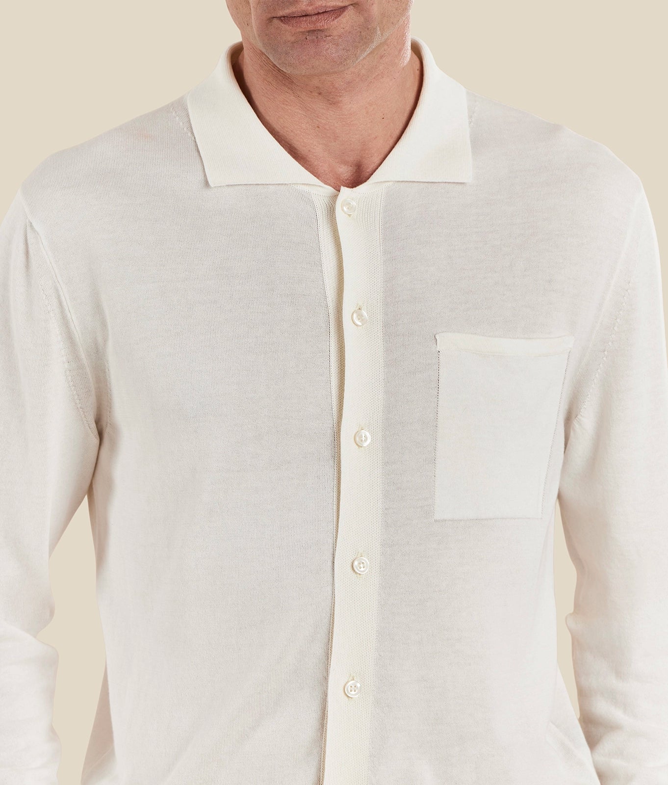 Knitted full buttoned shirt in 100% cotton 14 gauge