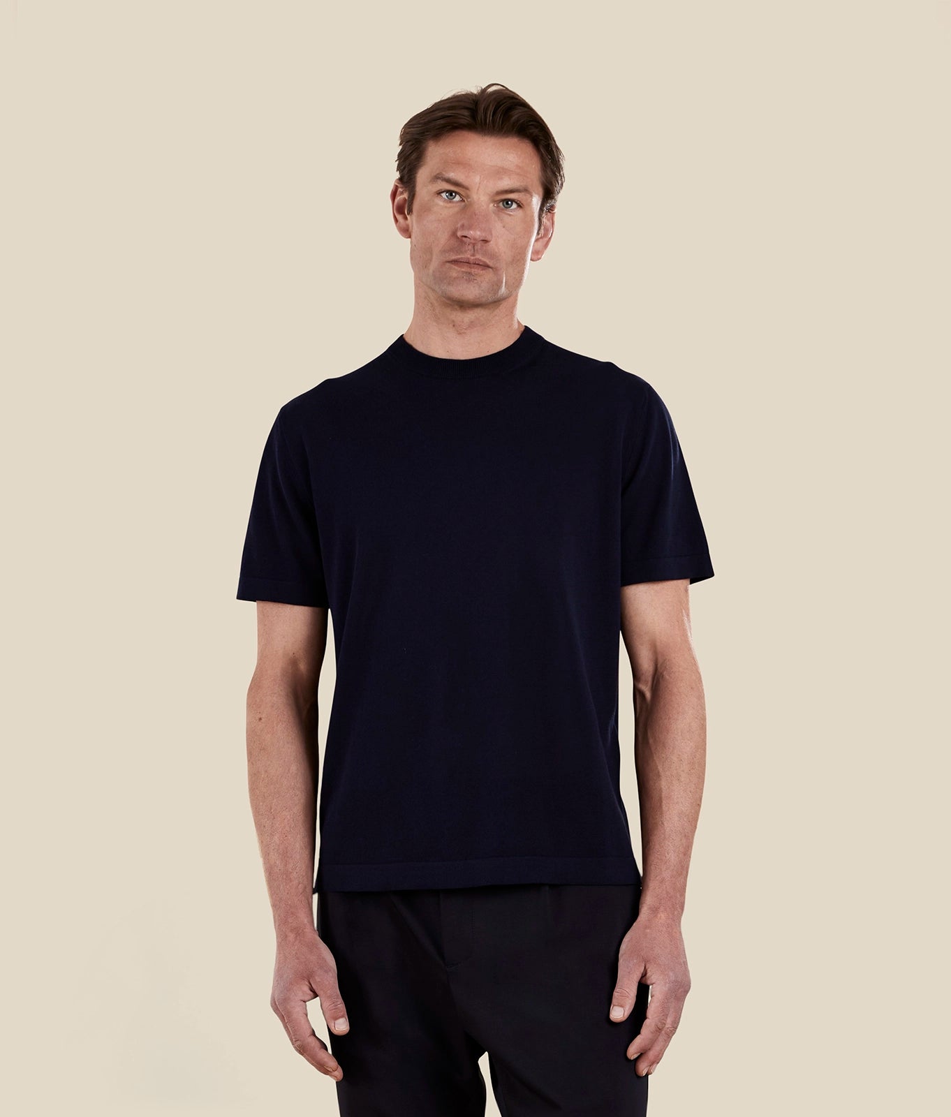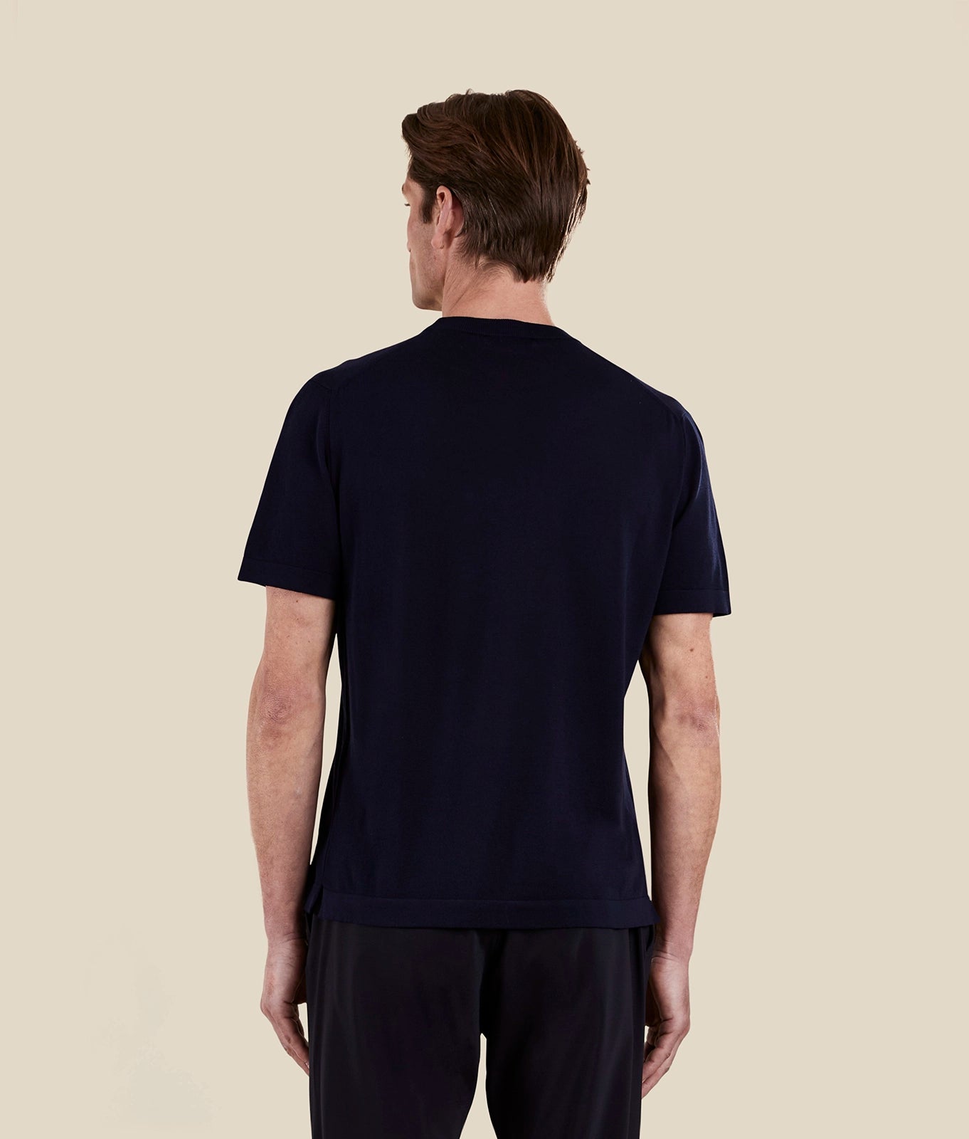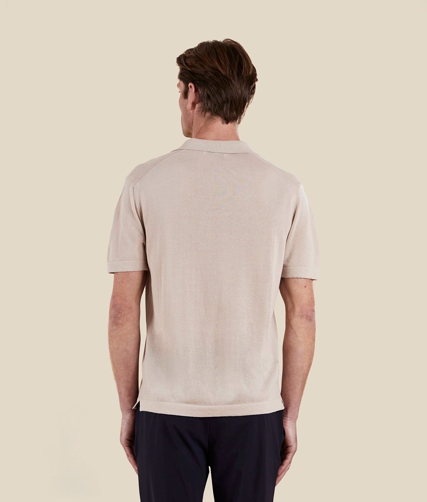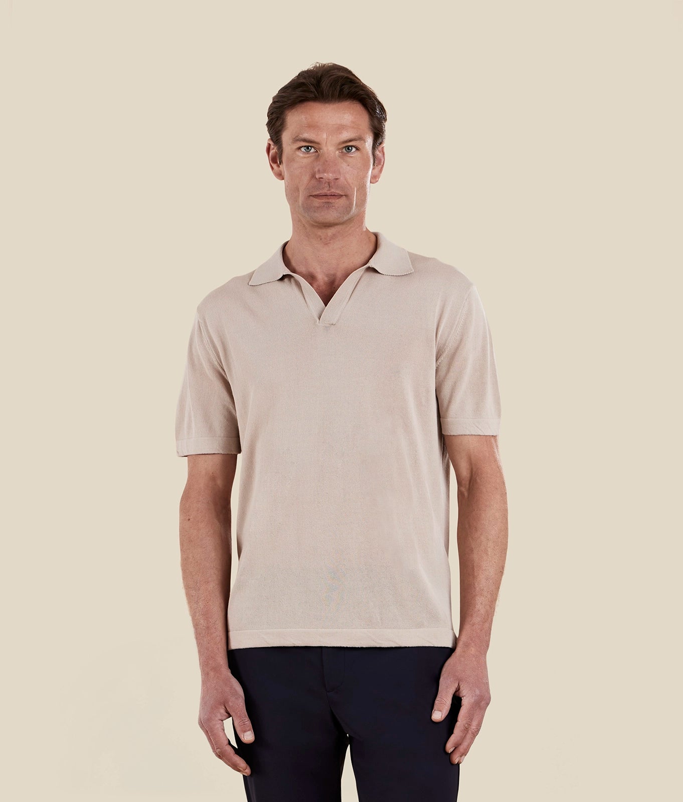 Knitted short sleeved buttonless polo shirt in 100% cotton 14 gauge
