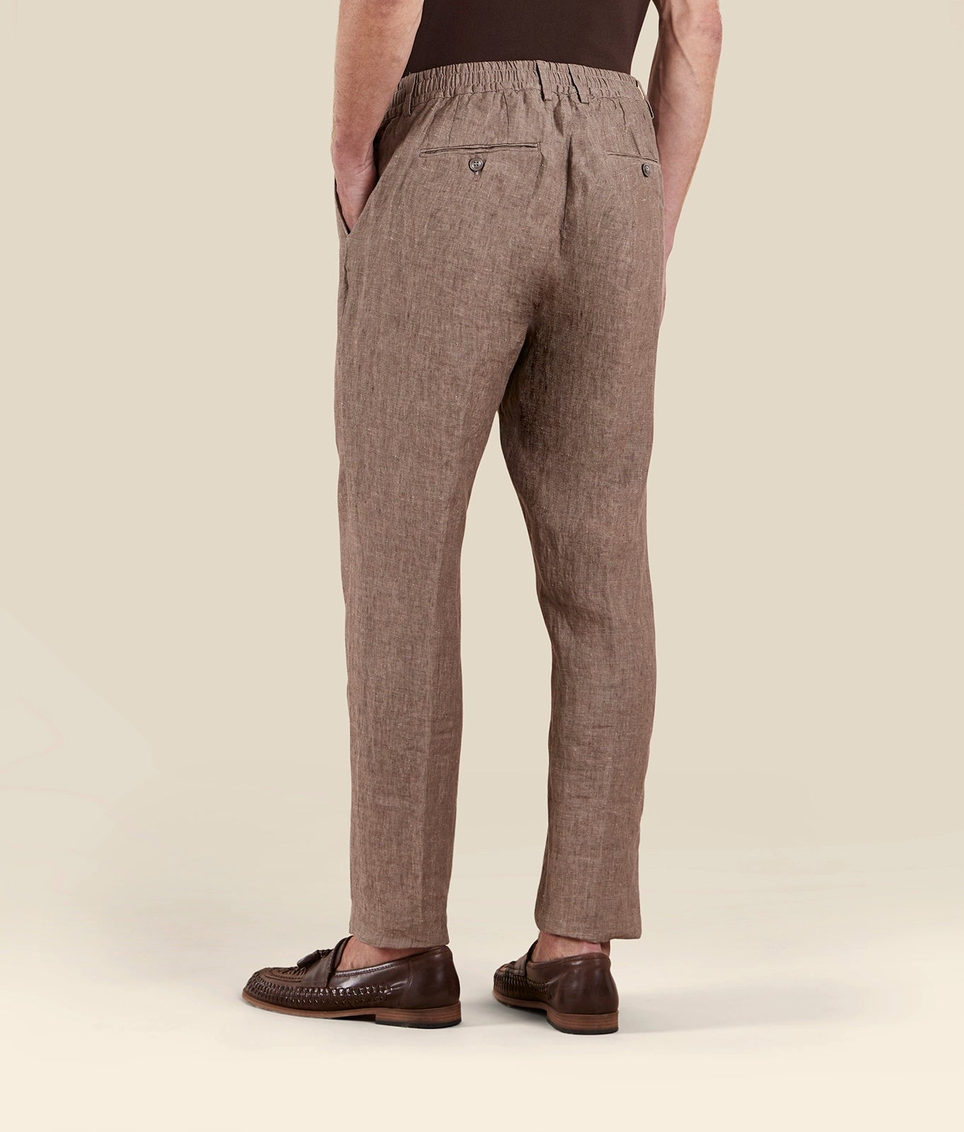Pantaloni tapered fit con elastico e coulisse in tela leggera di puro lino