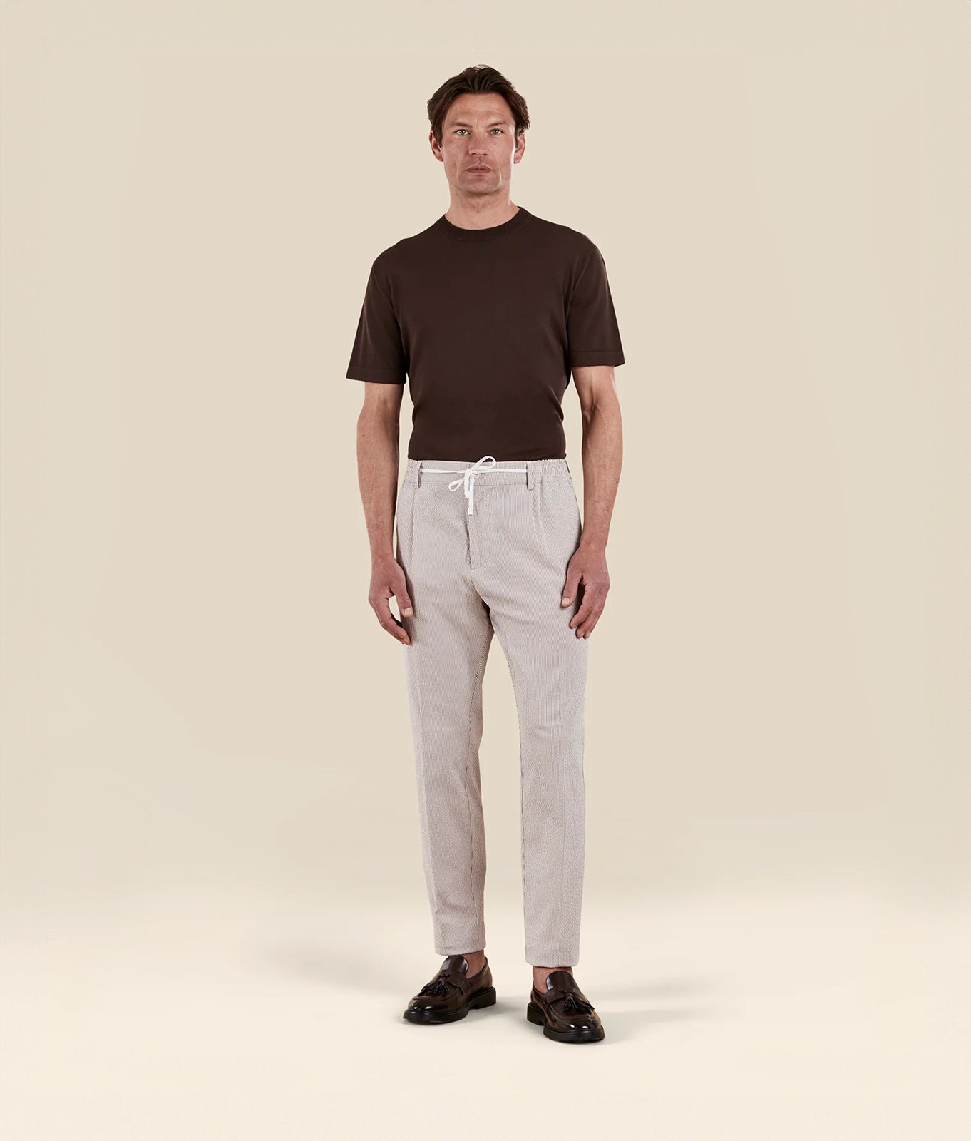 Pantaloni tapered fit con elastico e coulisse in vita in seersucker di cotone stretch