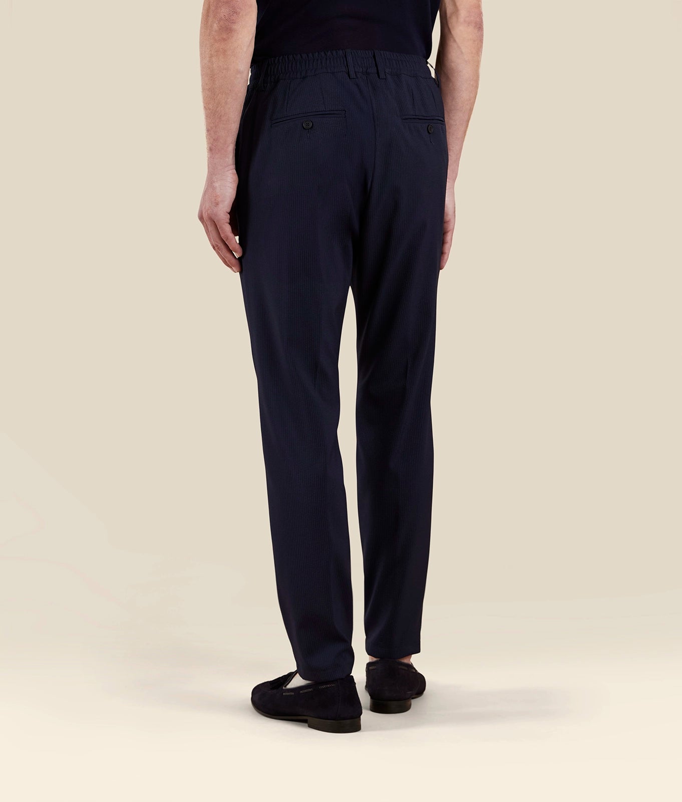 Tapered fit trousers with elastic waistband in High-Performance Seersucker