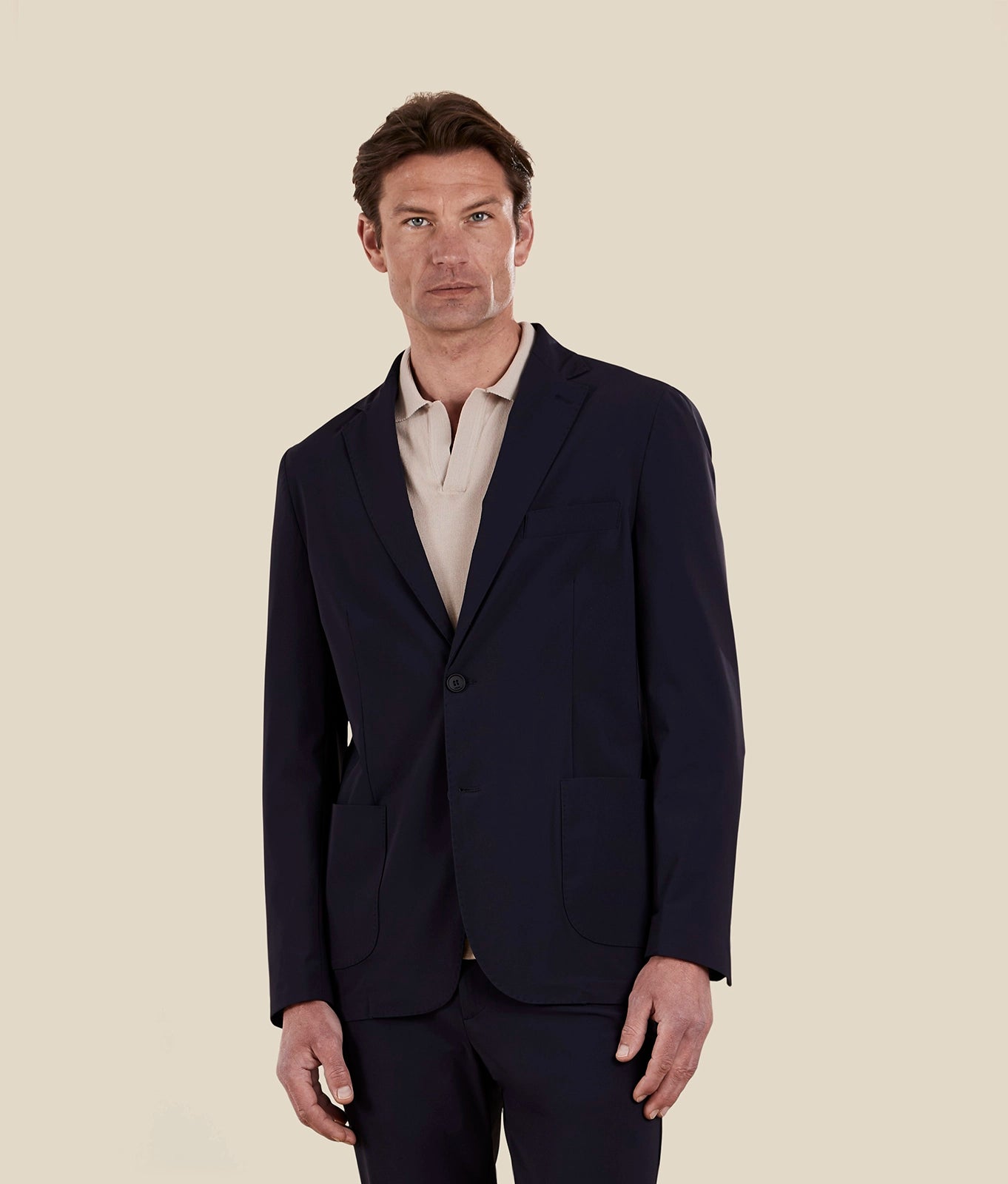 Giacca overshirt con tasche applicate in tela di lana vergine ultra stretch