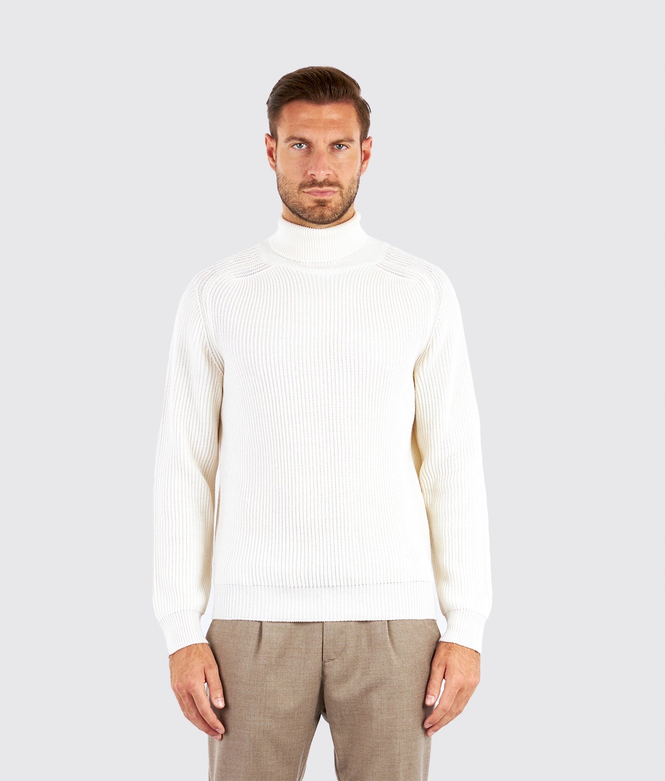Maglia dolcevita in lana merino a costa inglese