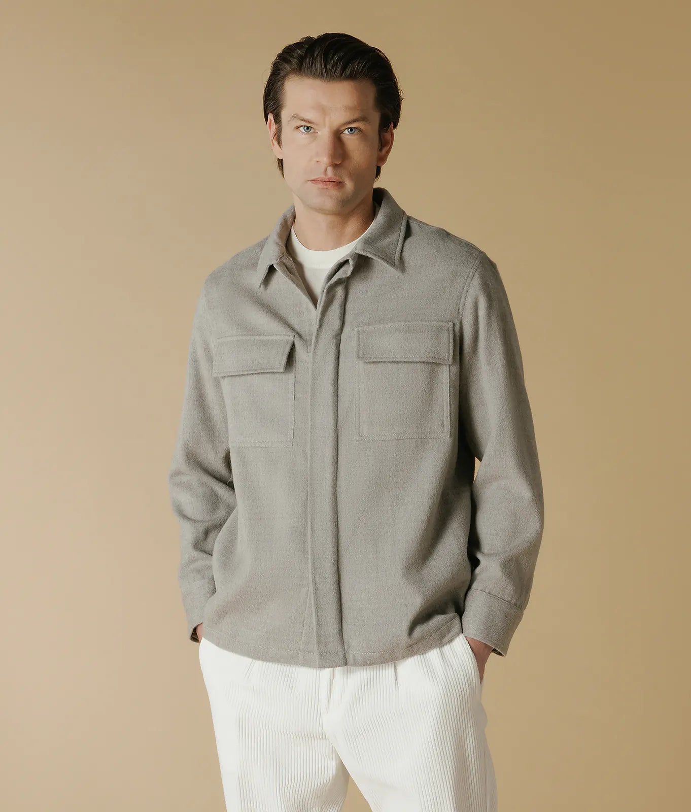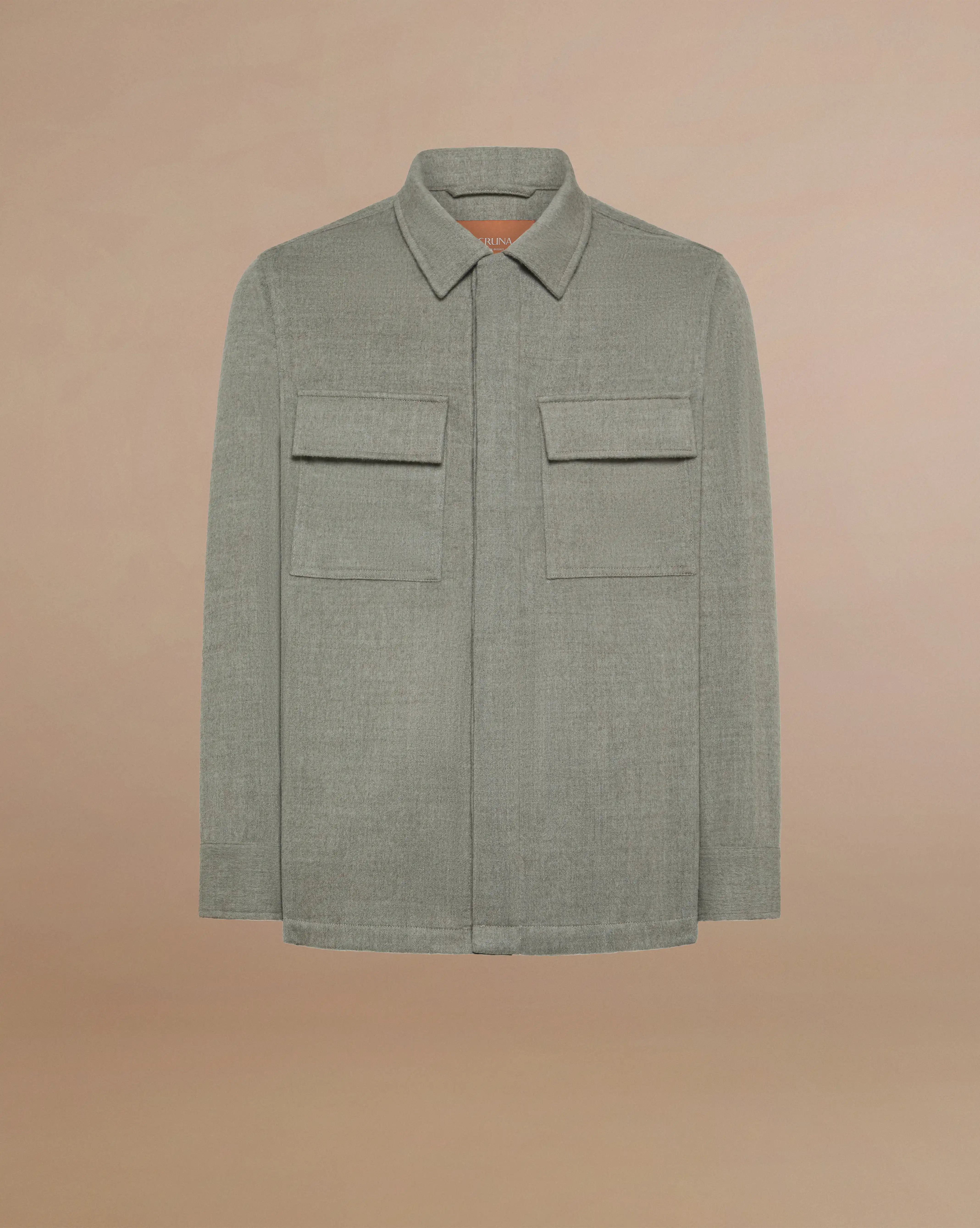 Giacca overshirt con tasche applicate in flanella in lana stretch