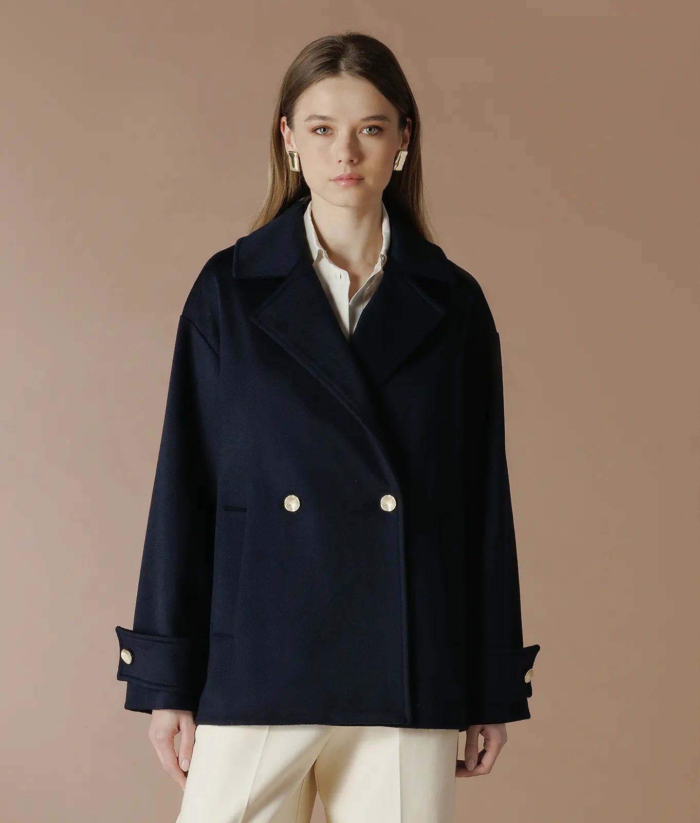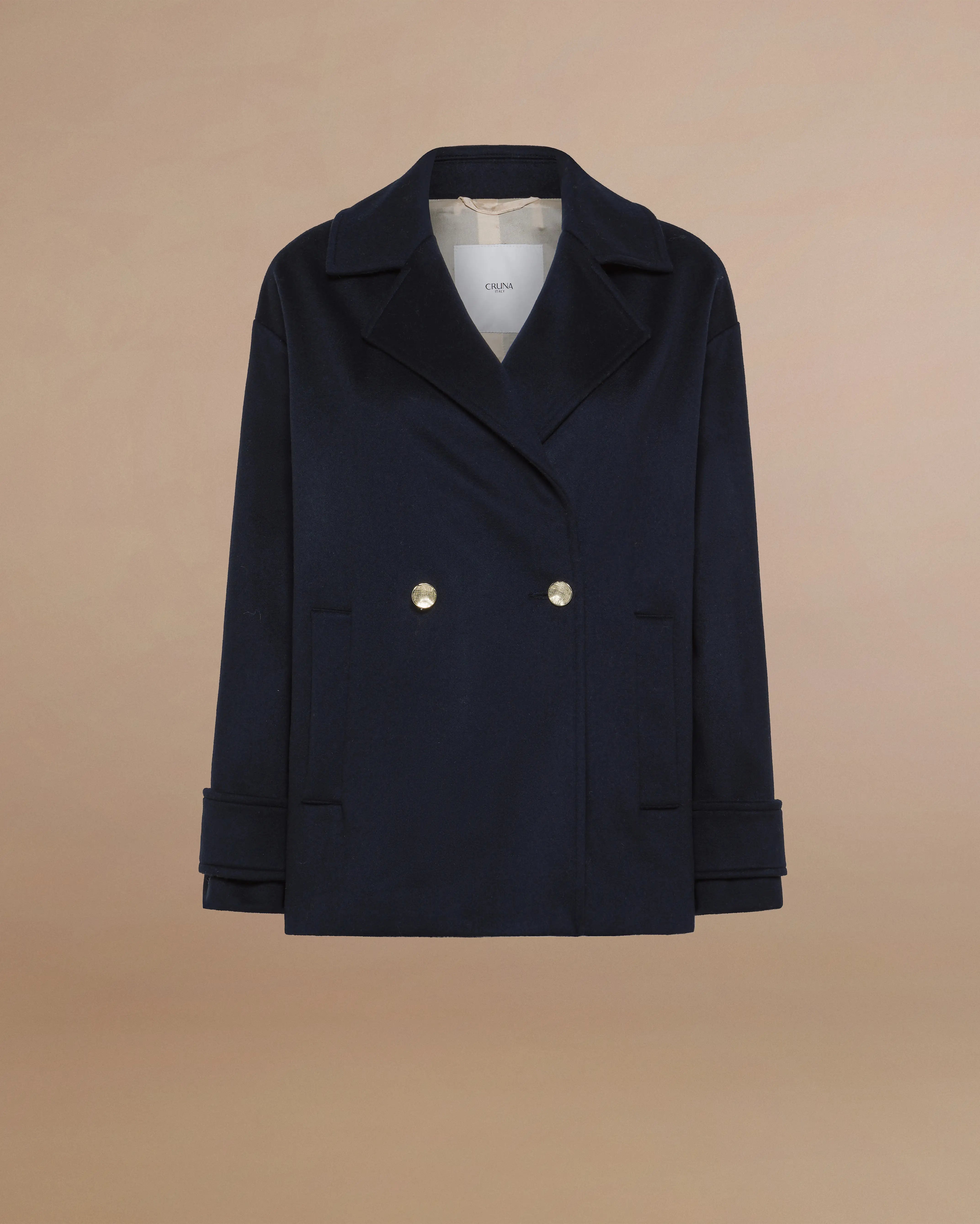 Giacca doppiopetto con spalline imbottite in piede de poule misto lana