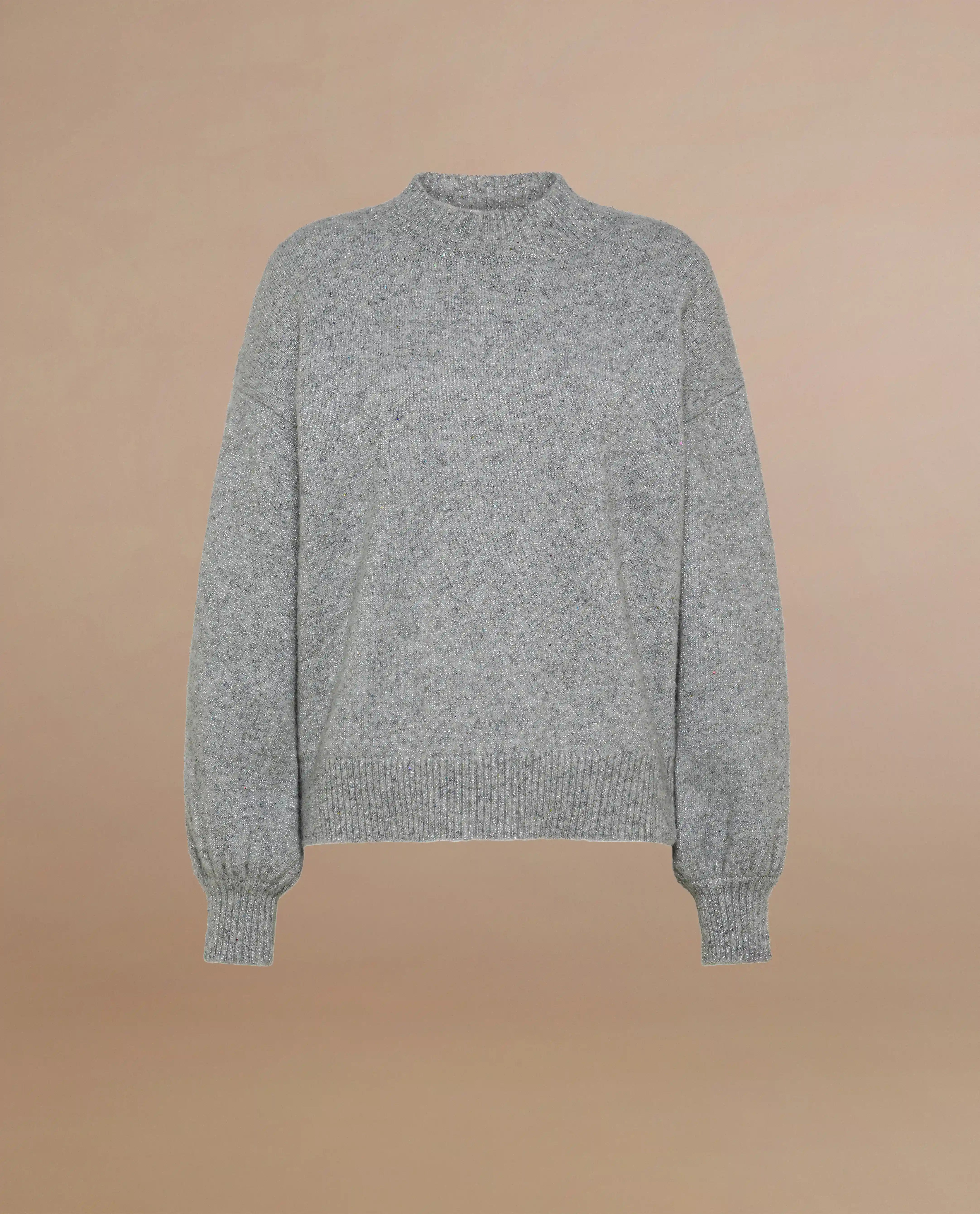 Long-sleeved sweater with a volcano neck in extrafine merino wool
