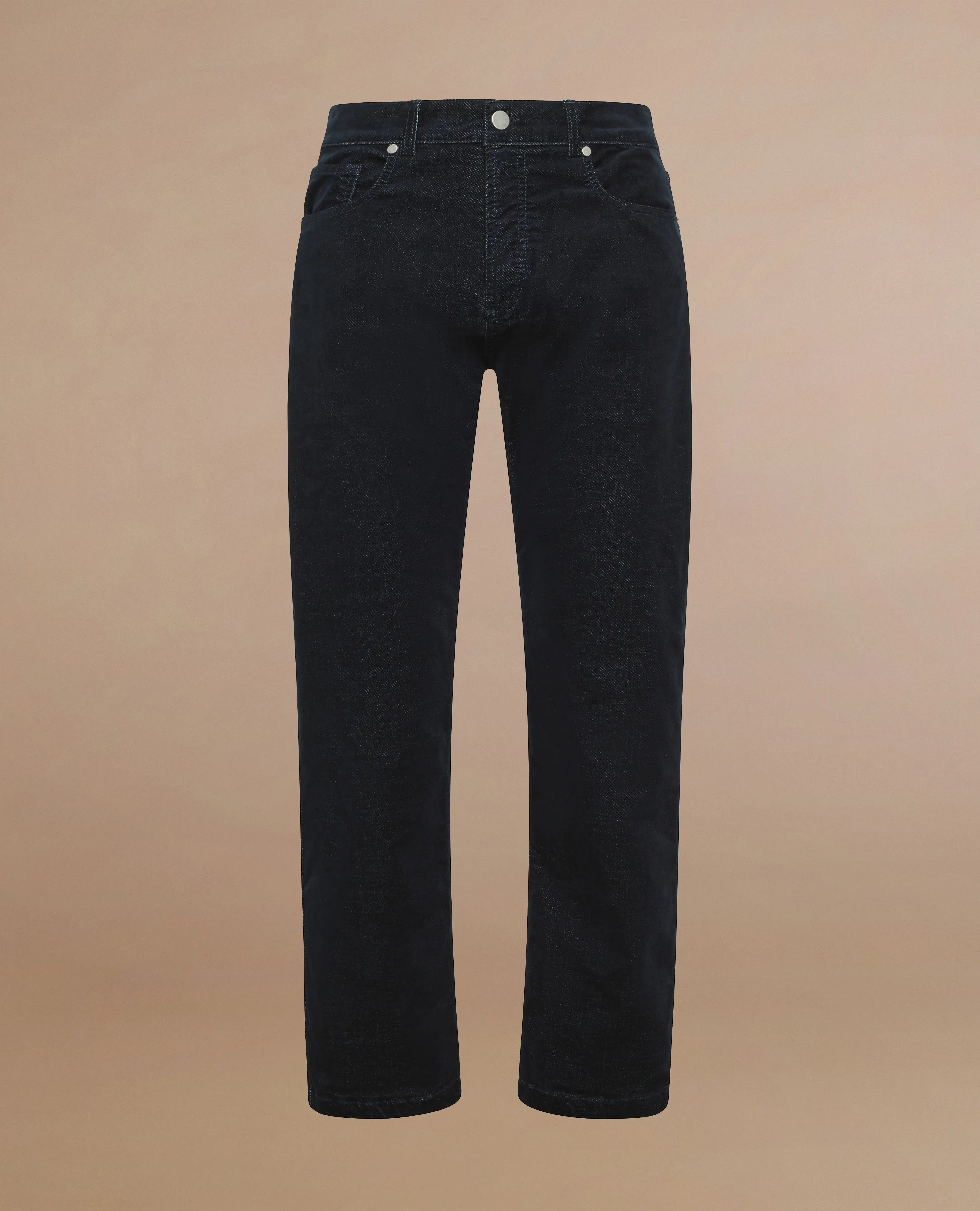 Slim fit trousers with elasticated waistband in cotton Herringbone