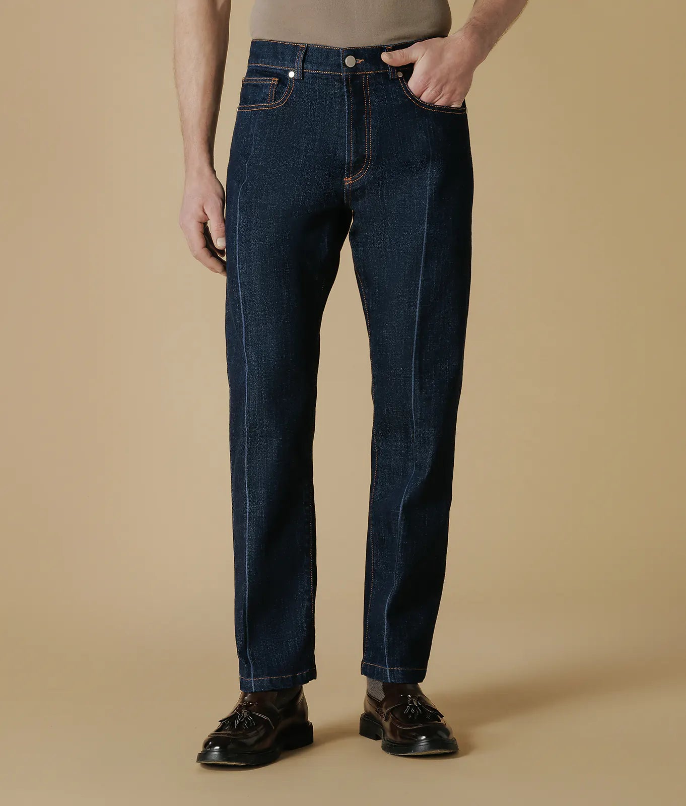 Pantaloni tapered fit con doppia pince in resca di lana vergine