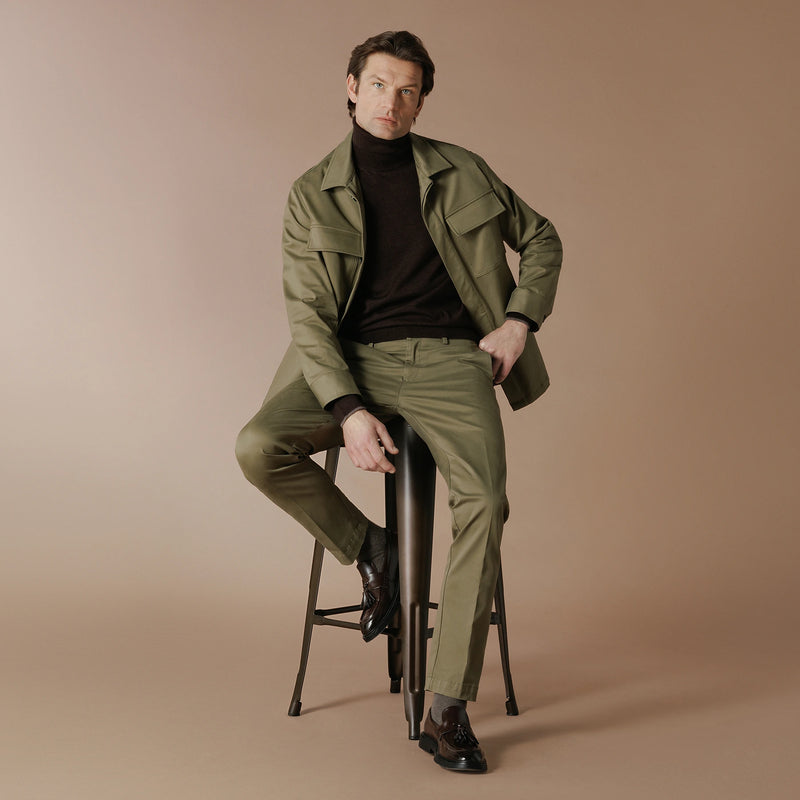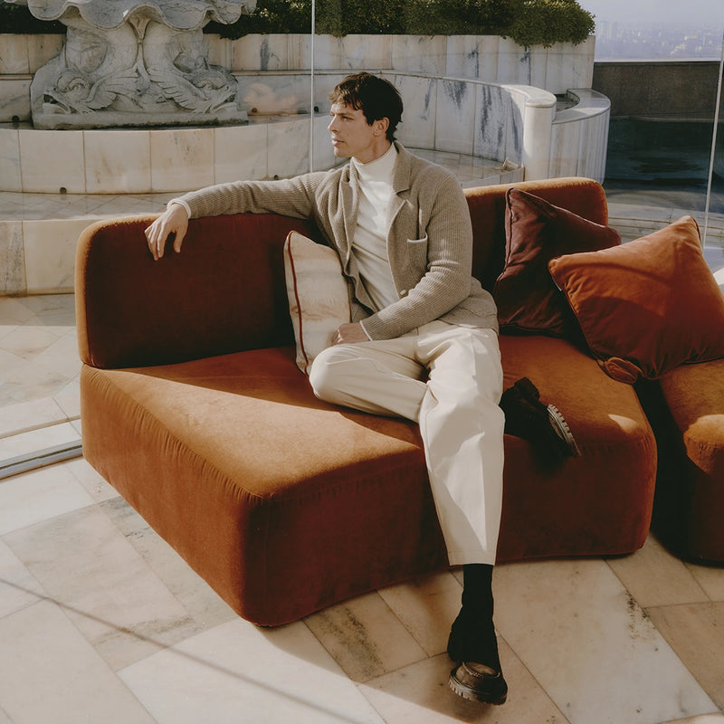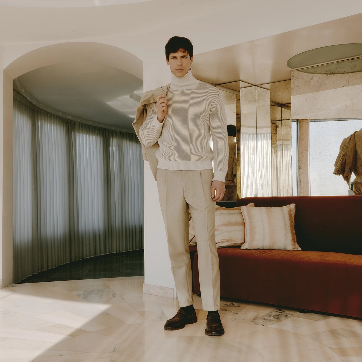 Una collezione che unisce la matericità dei tessuti alla leggerezza delle forme, con una palette calda e avvolgente che accompagna silhouette morbide e fluide. I codici classici vengono reinterpretati con uno sguardo contemporaneo, dando vita a un guardaroba sofisticato, autentico e funzionale. Ogni capo è pensato per uomini consapevoli, colti, sempre in movimento: un invito a vivere con misura, intensità e autenticità, oltre le mode del momento.