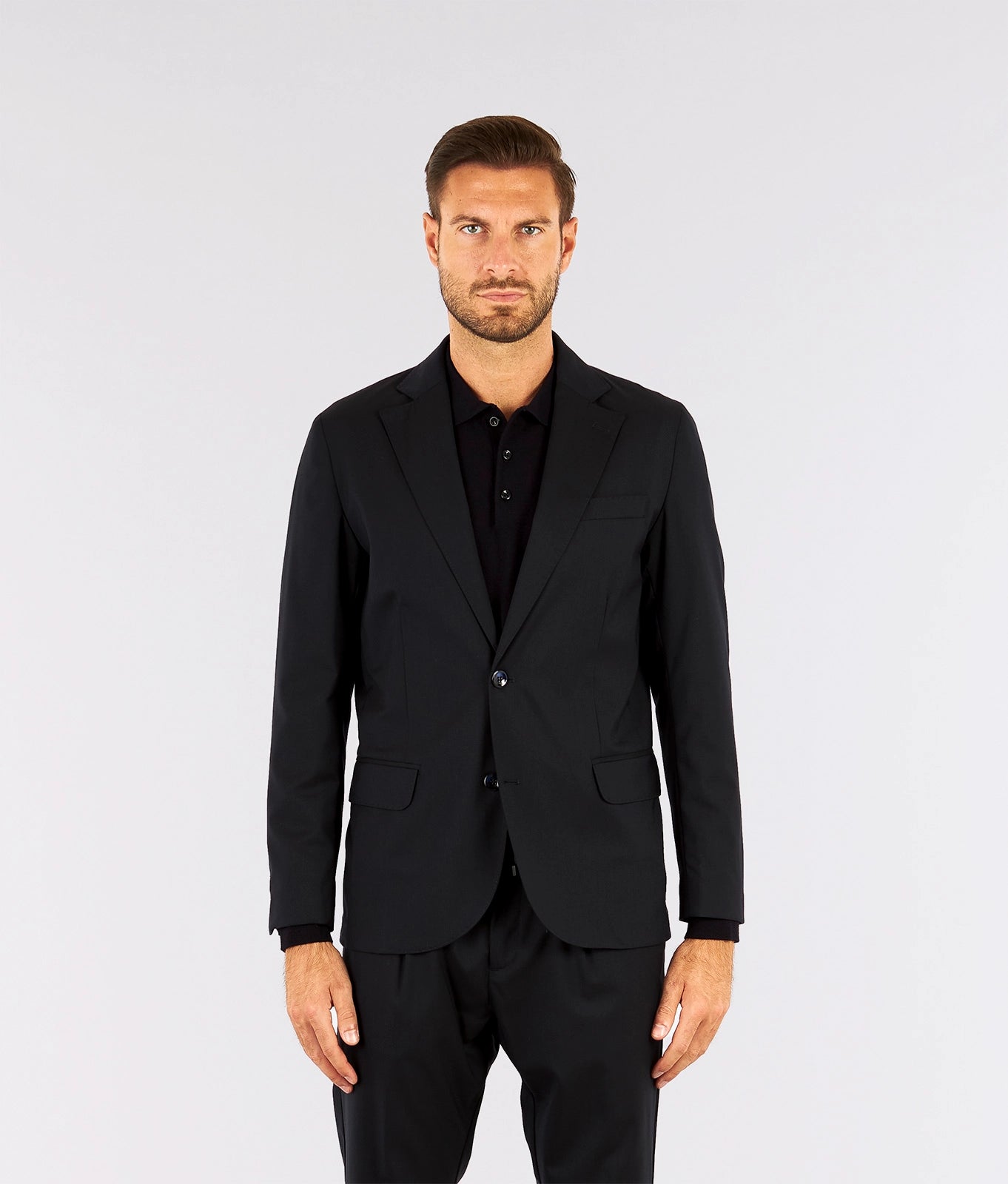 Giacca monopetto con tasche applicate in gabardina di lana tecnica elasticizzata