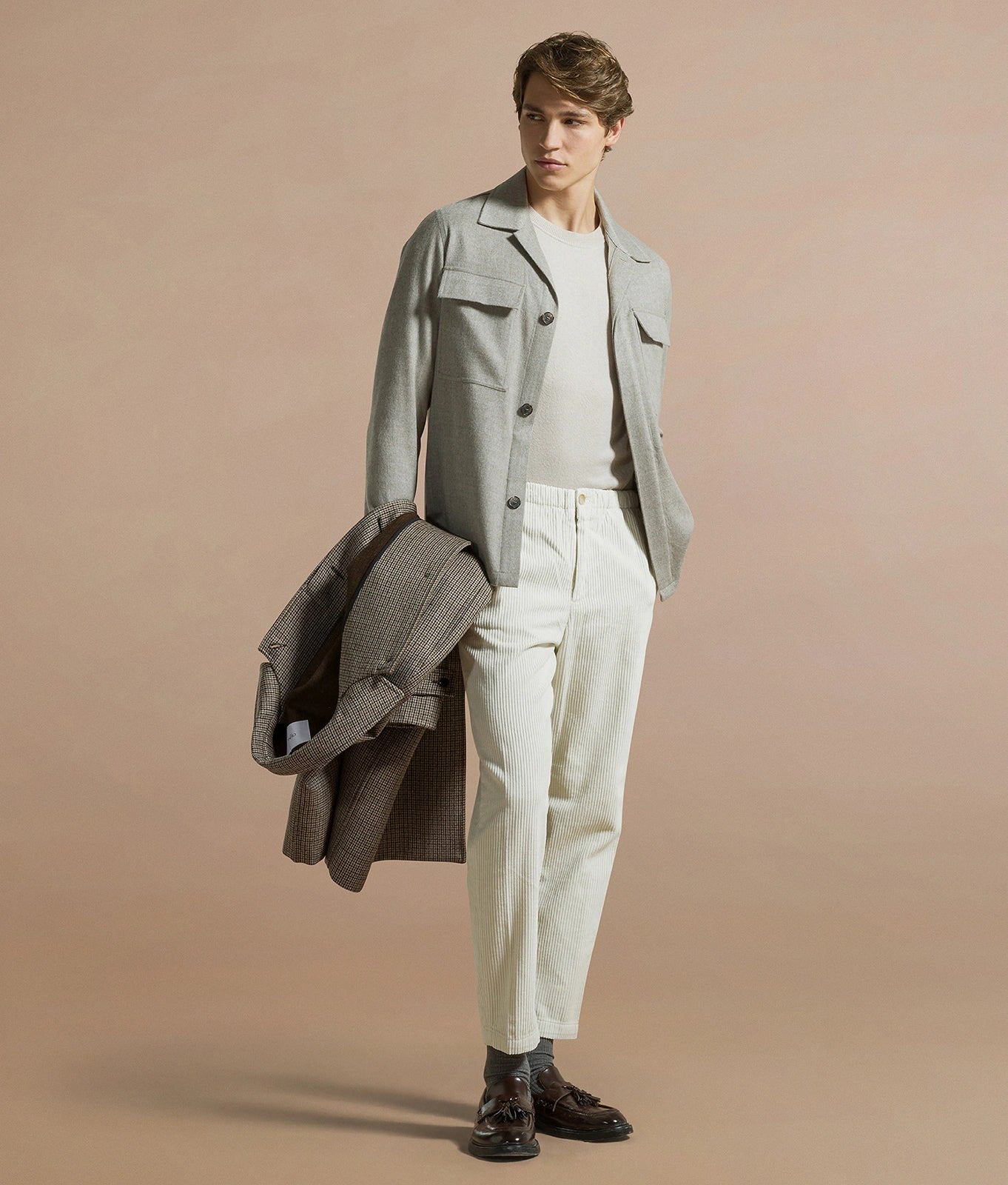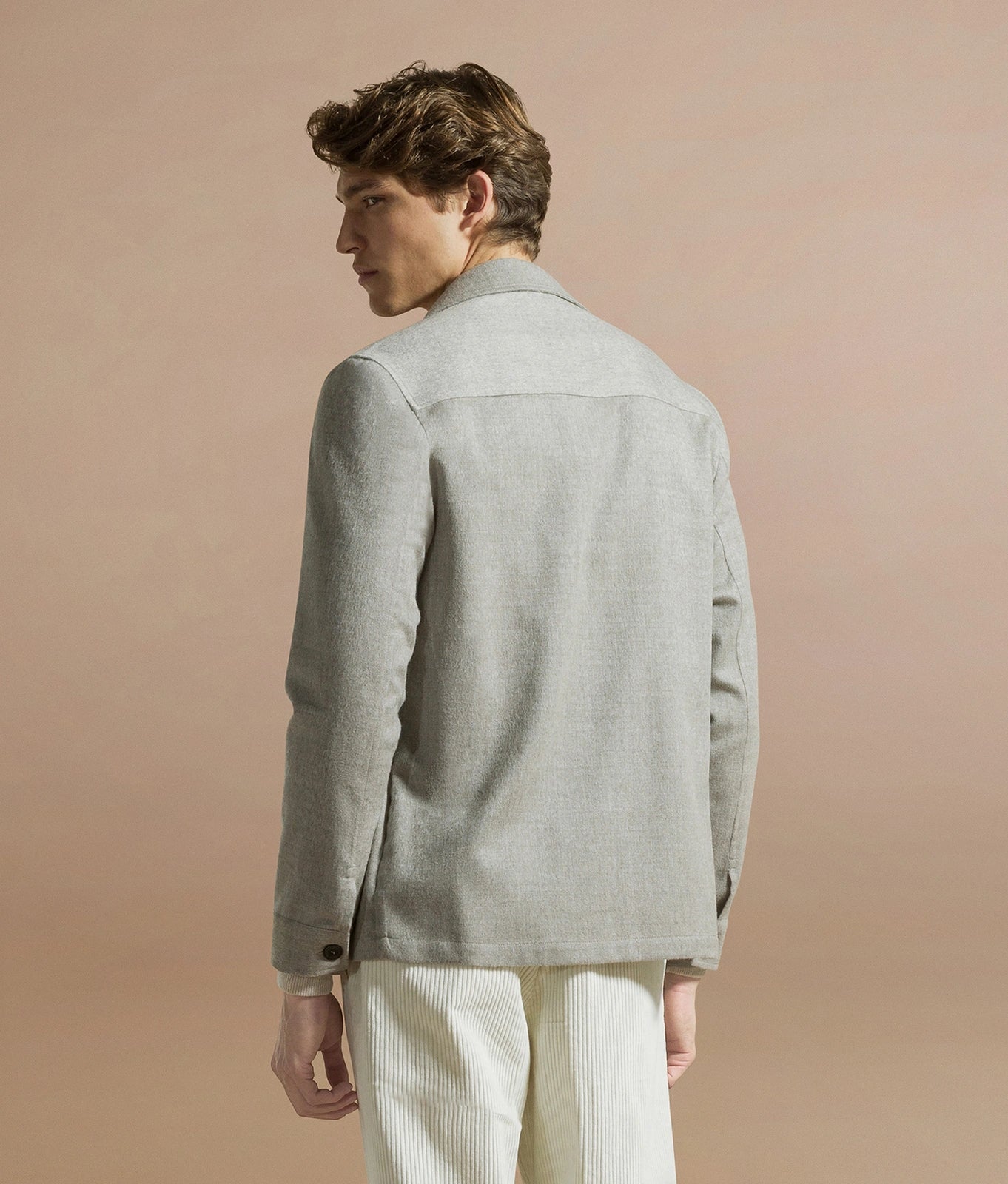 Bruges è la giacca overshirt con tasche applicate con pattina sul petto e chiusura con bottoni nascosti.