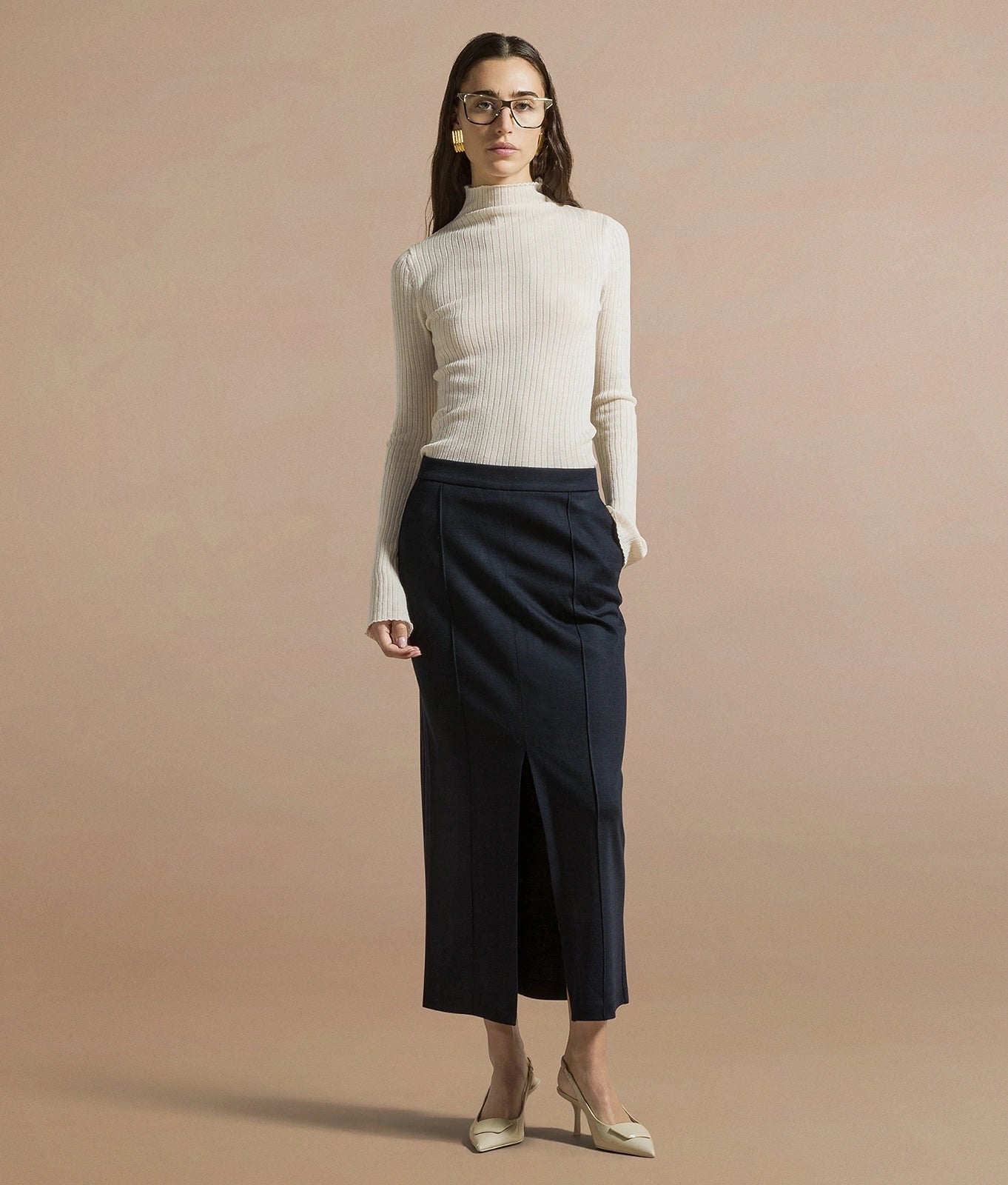 Maglia a maniche lunge con collo a vulcano in lana merino extrafine