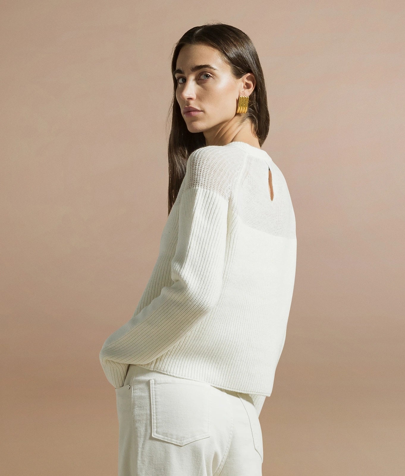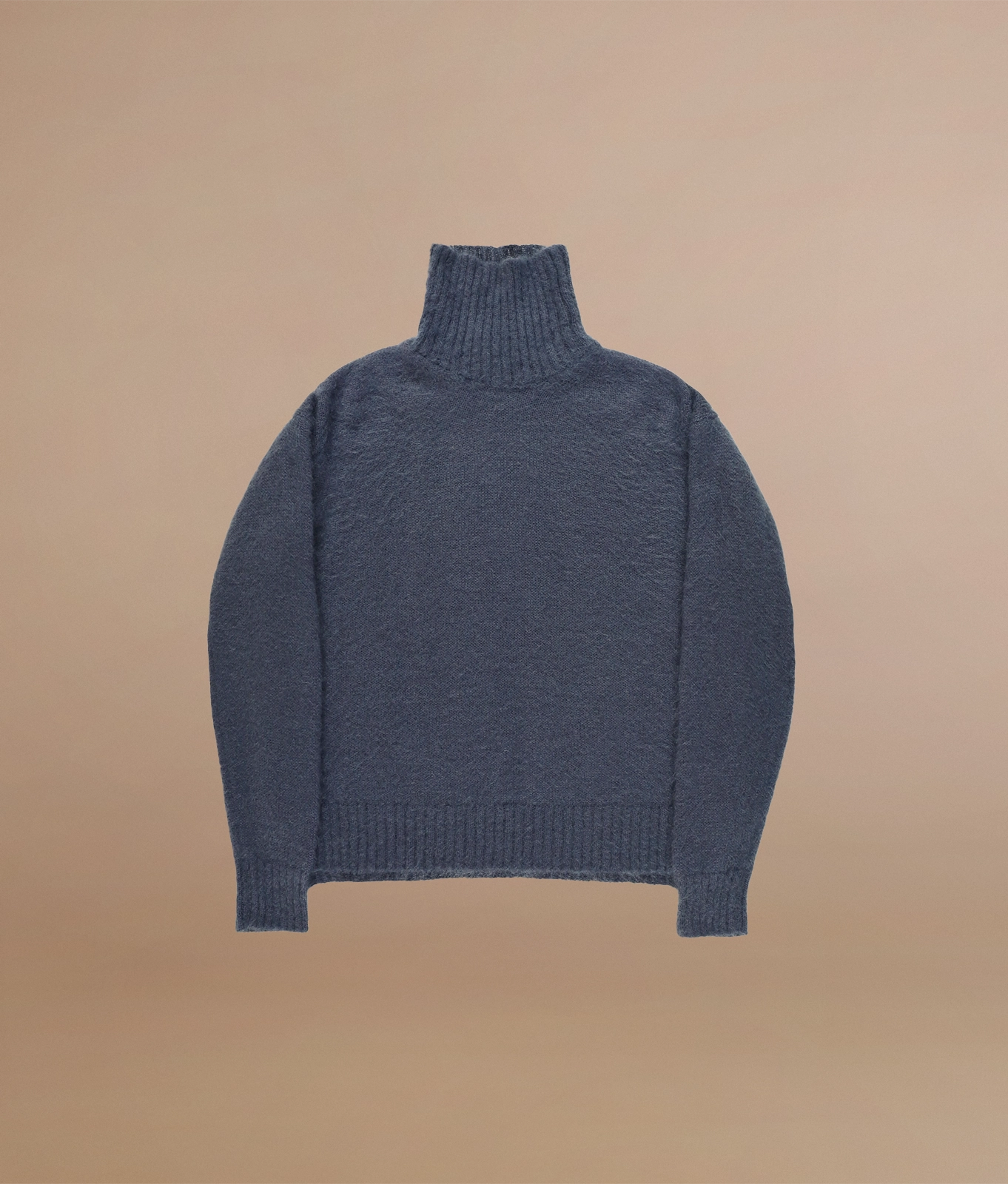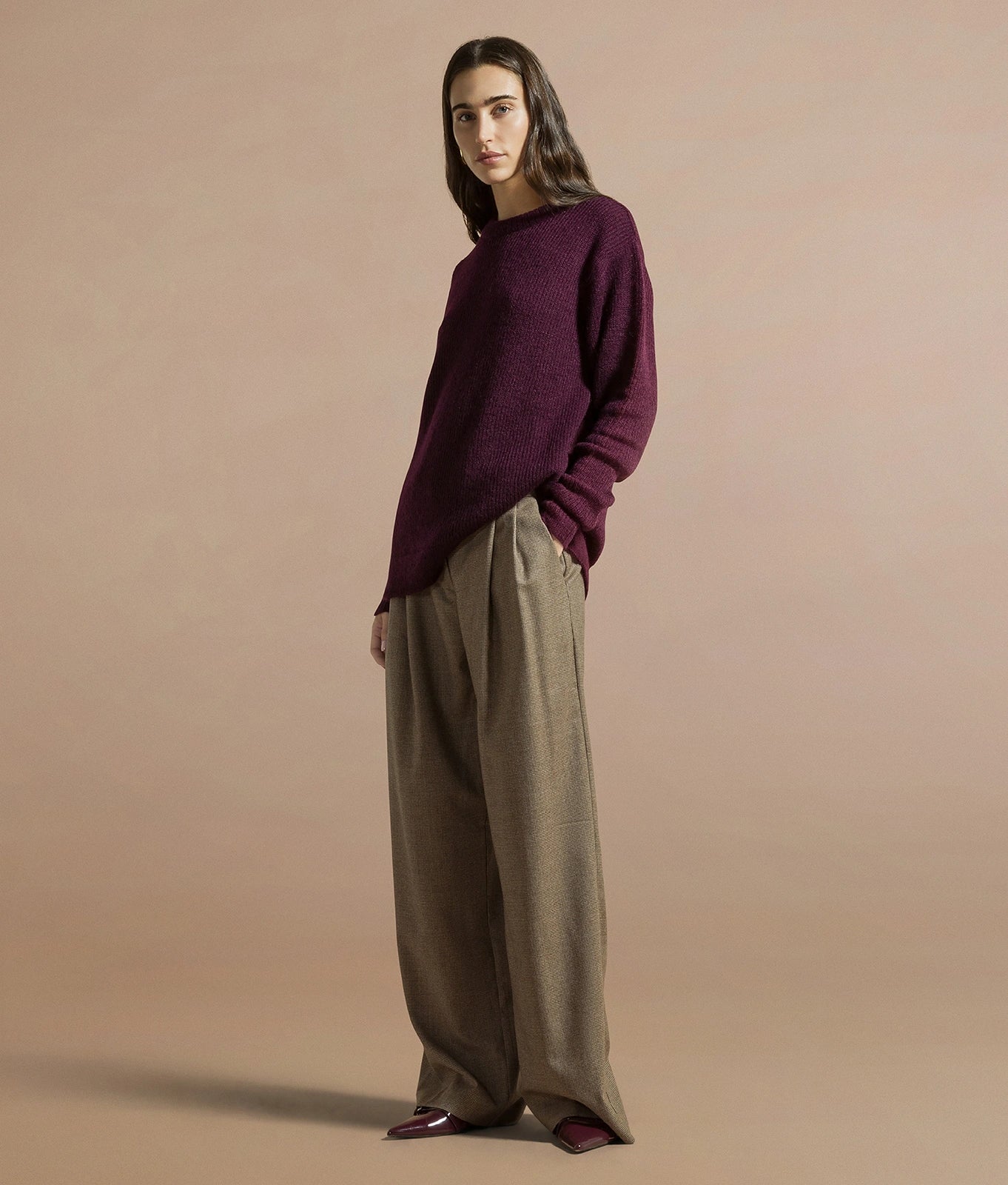 Long-sleeved sweater with a volcano neck in extrafine merino wool
