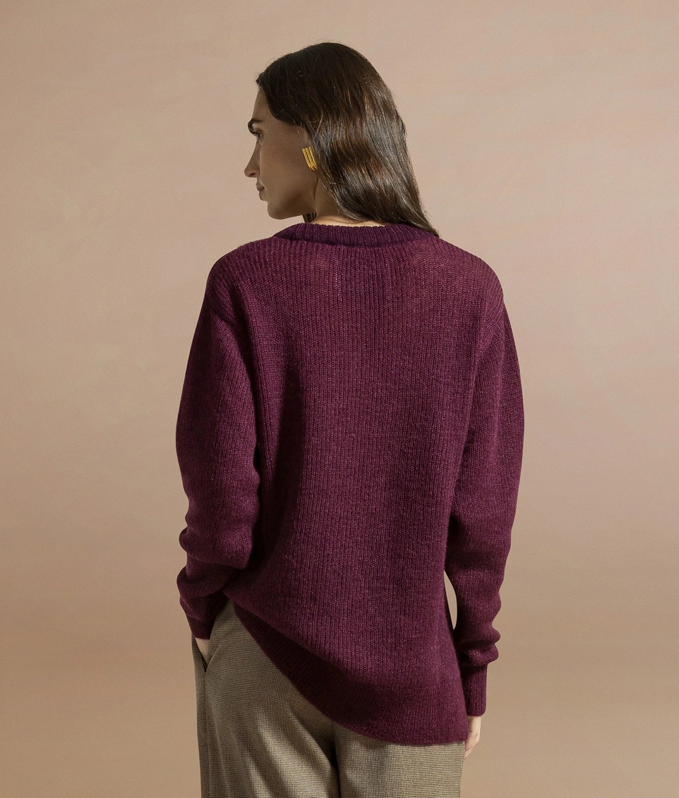 Maglia con scollo a V e spalline imbottite in lana mohair a costa inglese