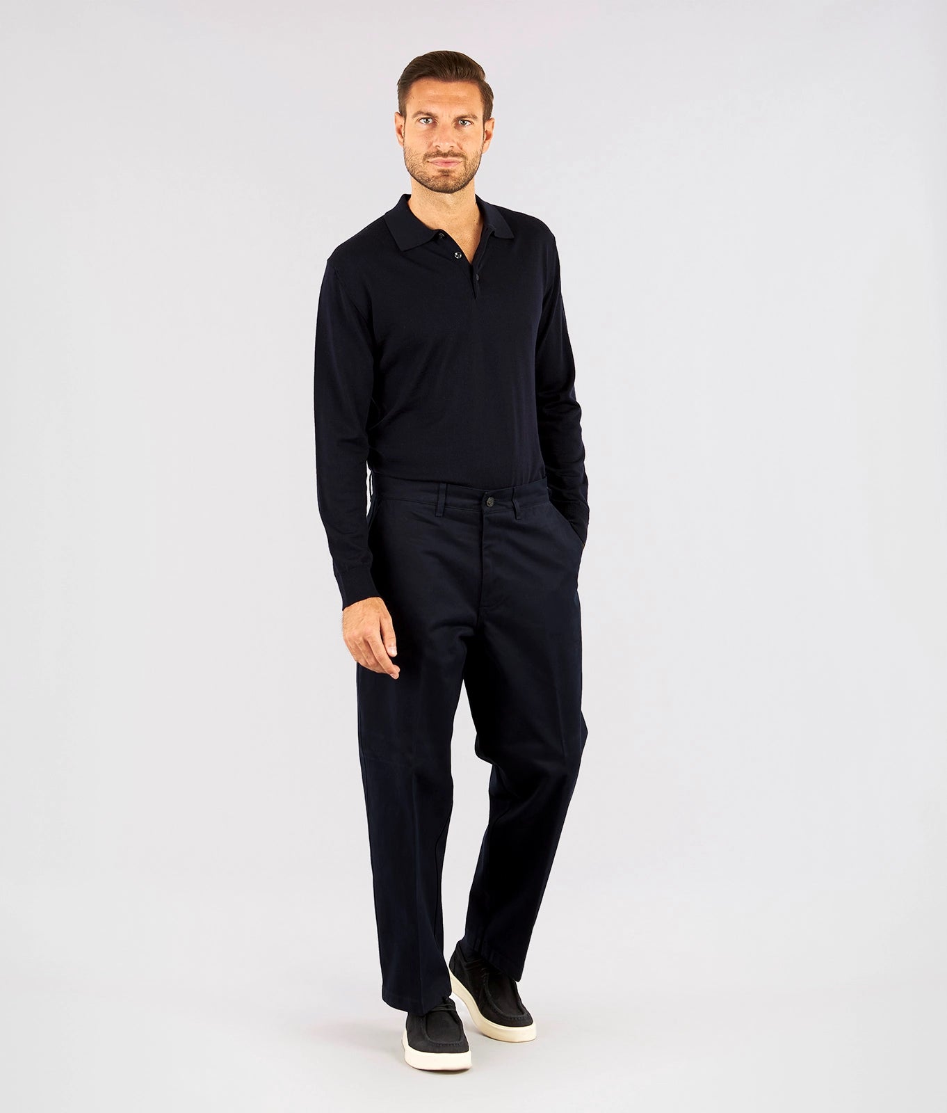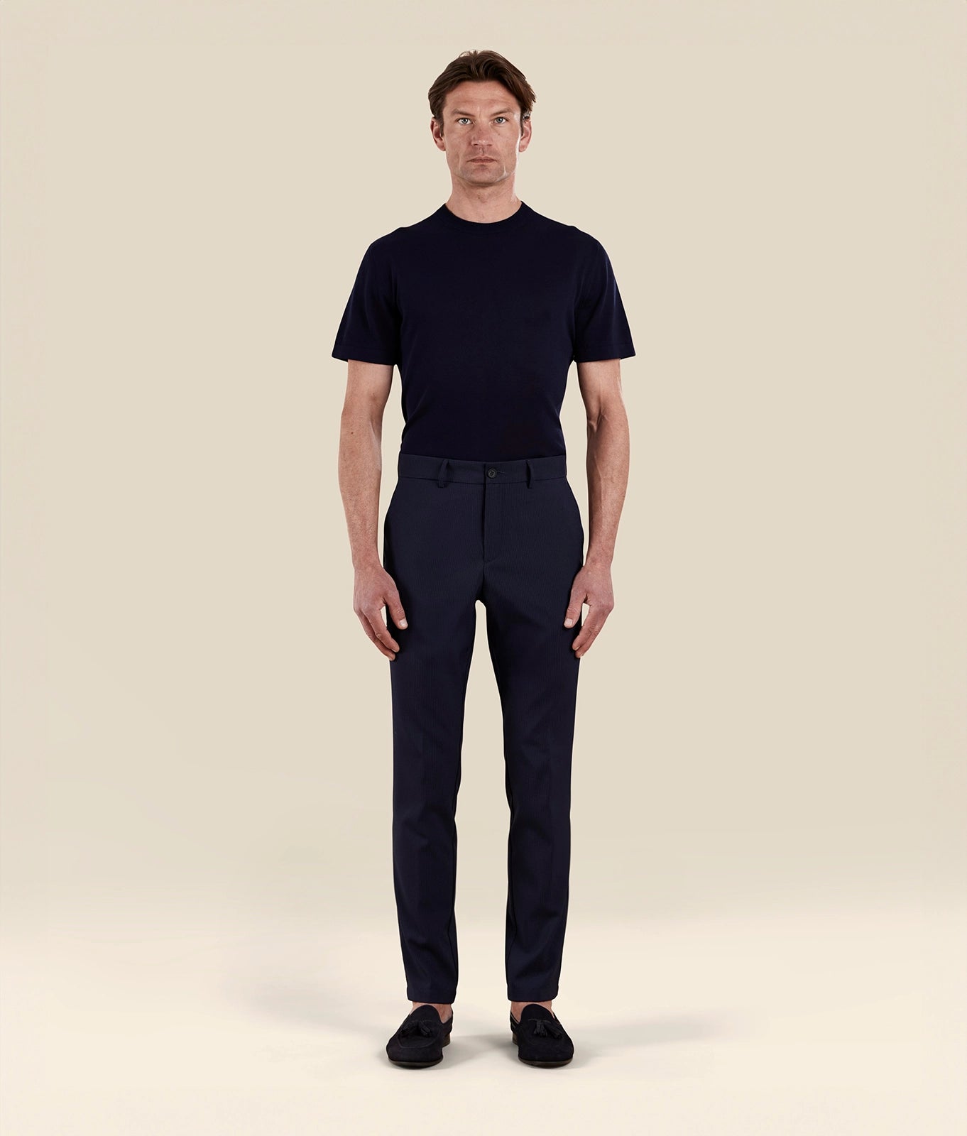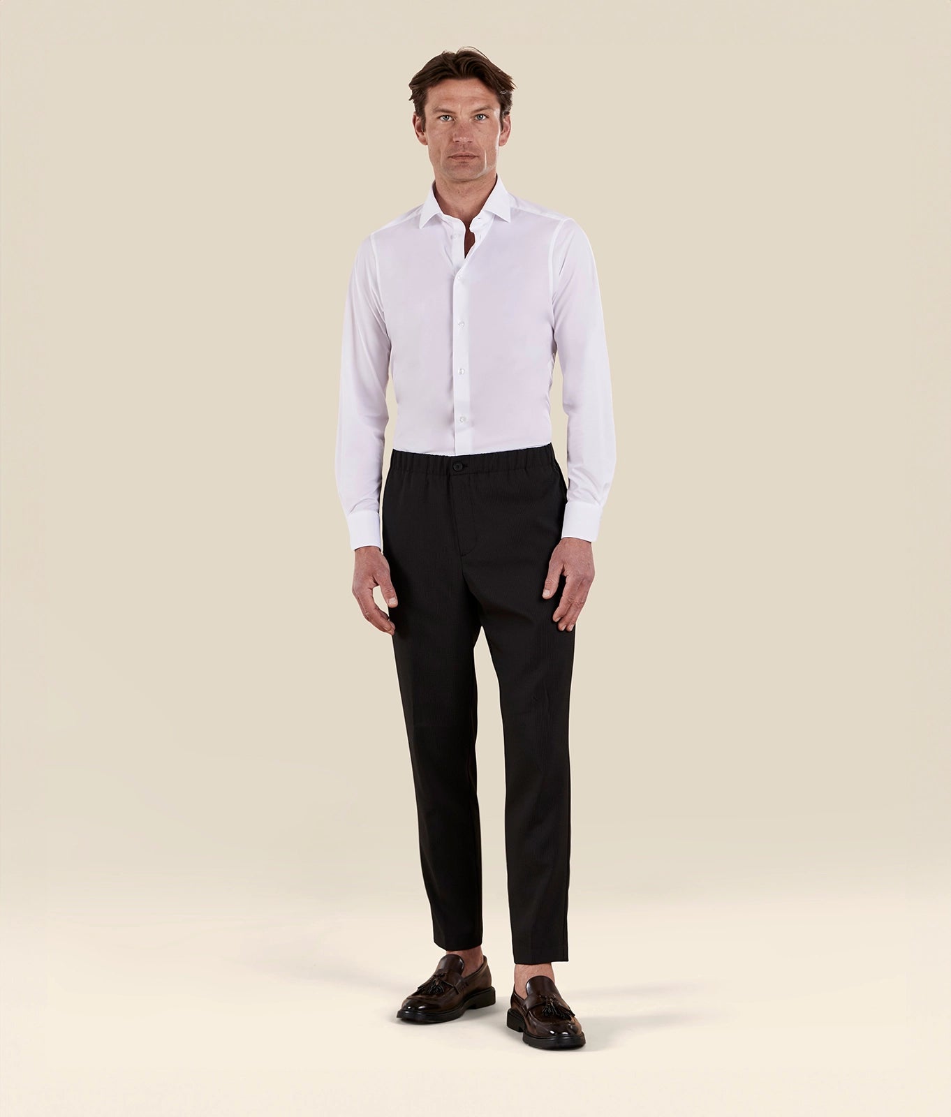 Tapered fit trousers with elasticated belt in ultra stretch virgin wool