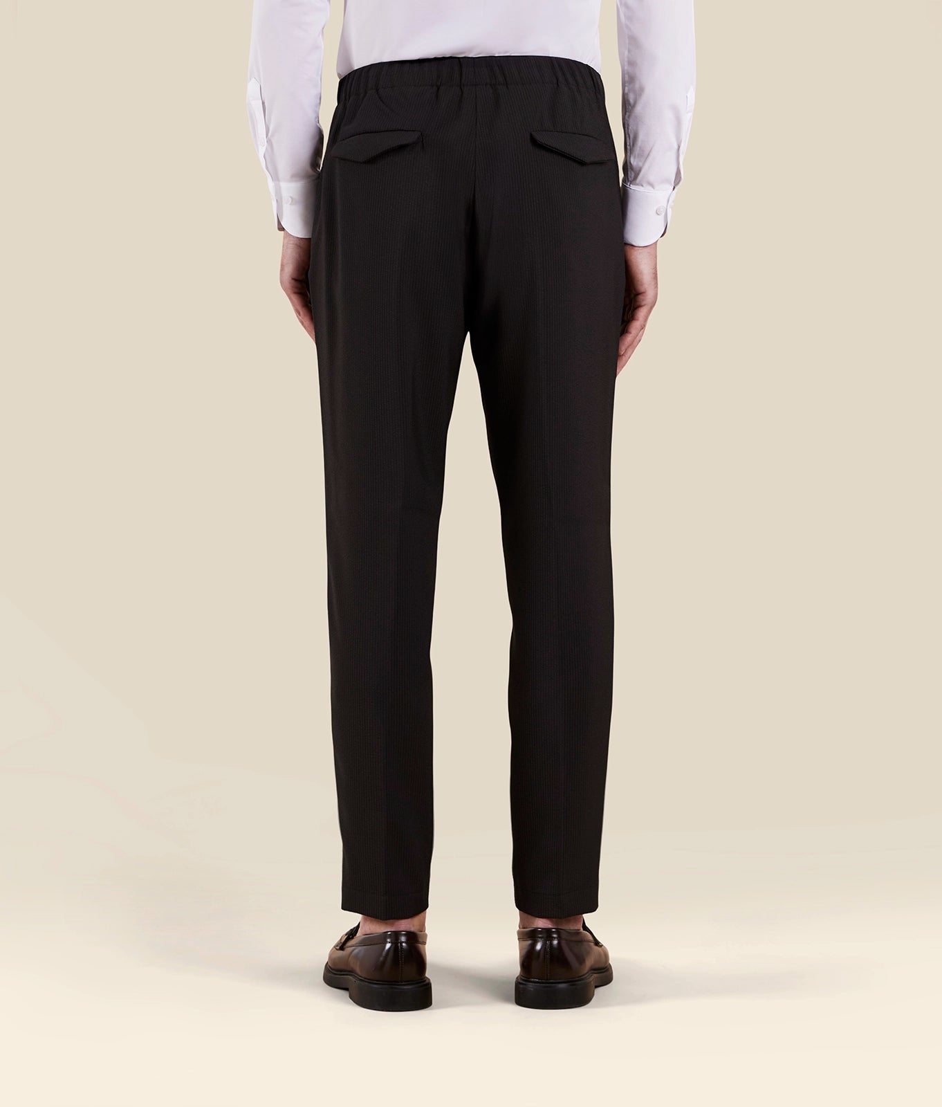 Tapered fit trousers with elastic waistband in High-Performance Seersucker
