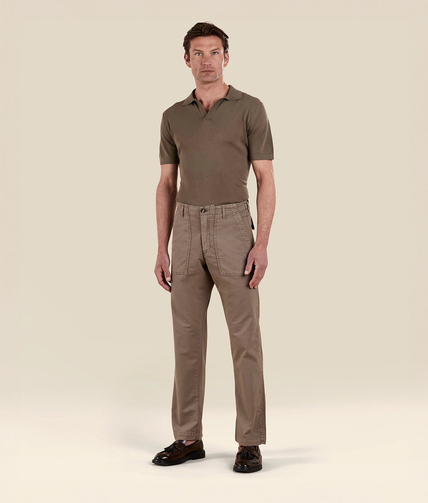 Pantaloni tapered fit con elastico in vita e coulisse a scomparsa in gabardina di cotone stretch