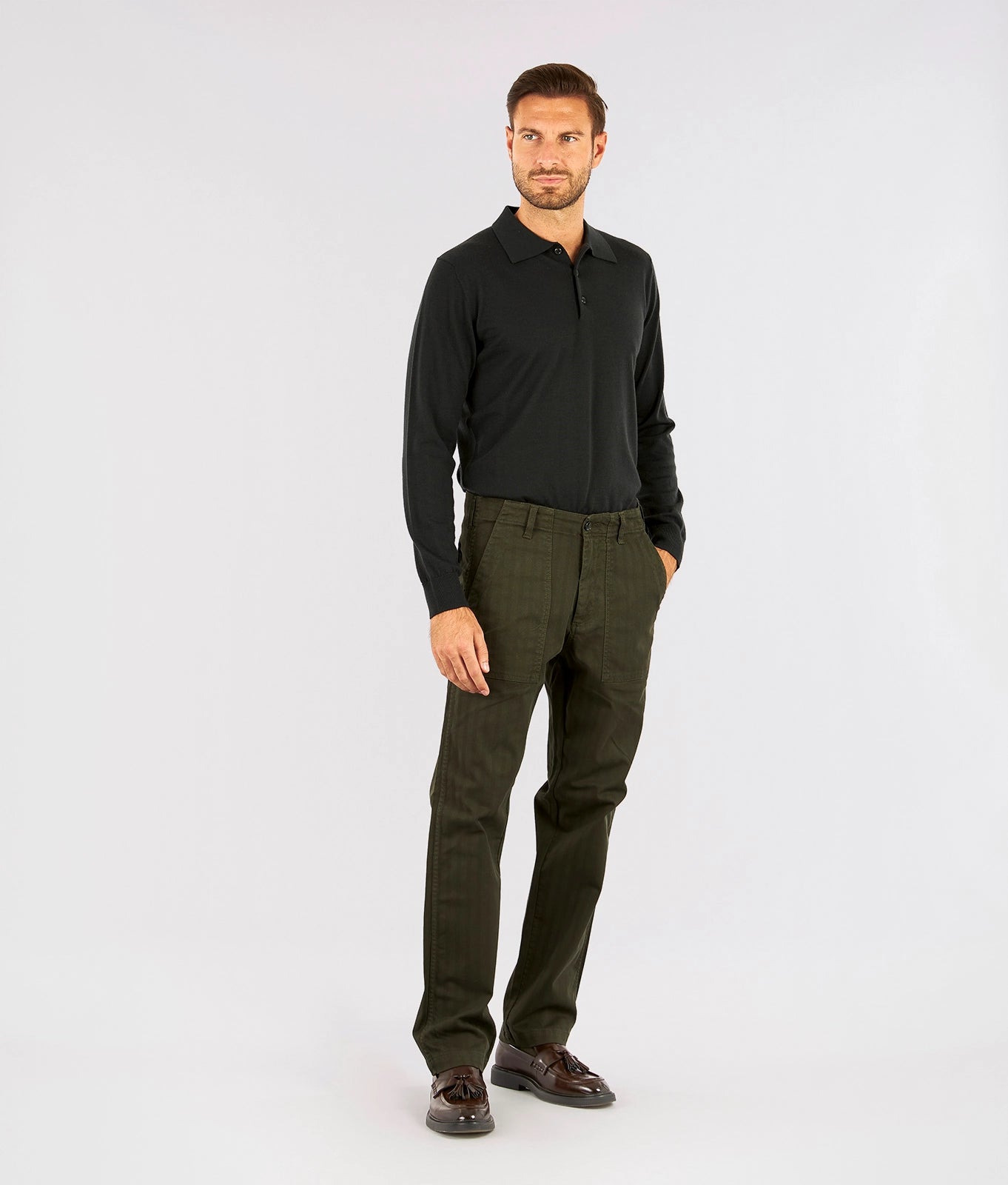 Slim fit trousers with elasticated waistband in cotton Herringbone