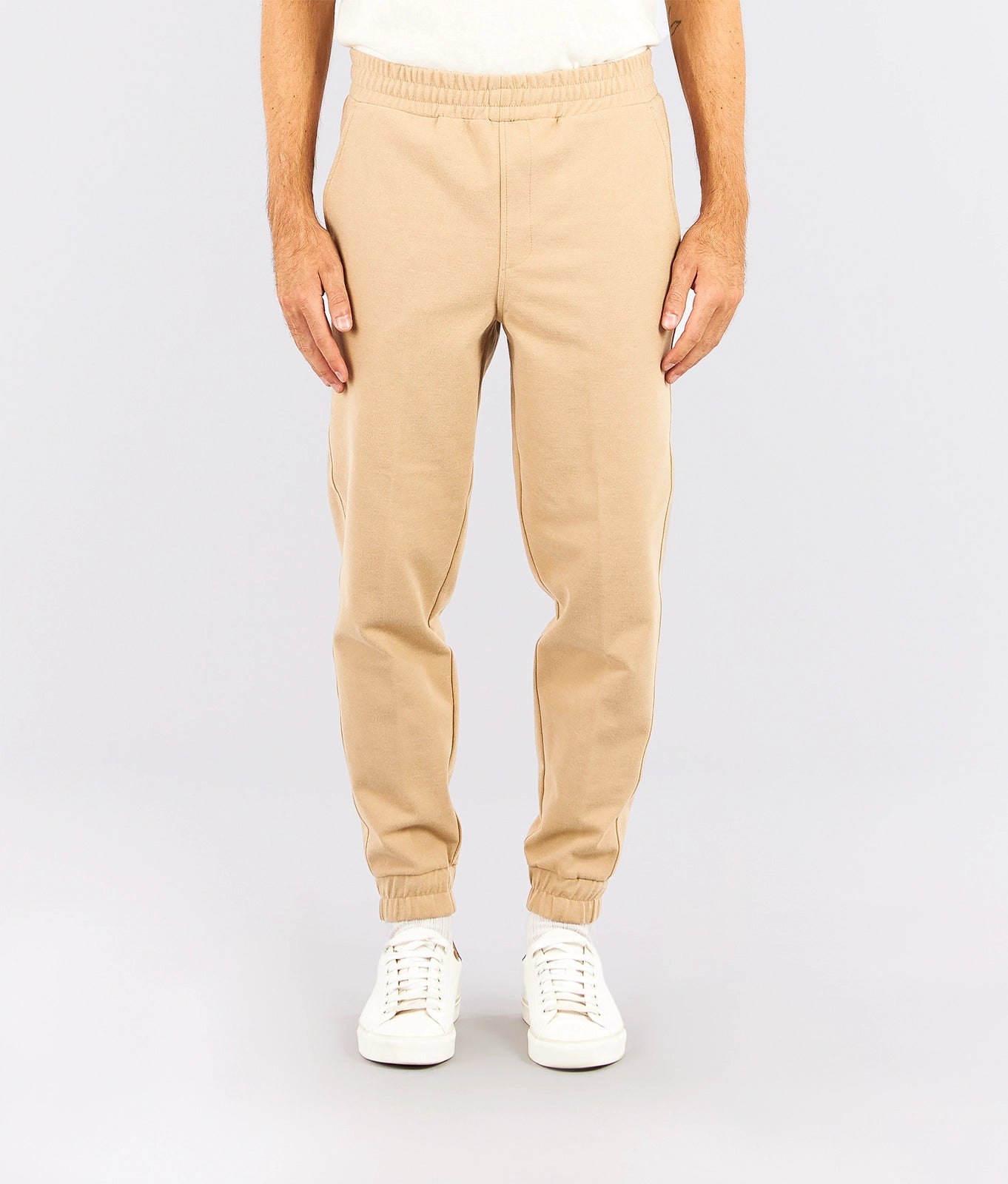 Tapered fit trousers with elasticated waist and drawstring in technical high-performance bonded fabric